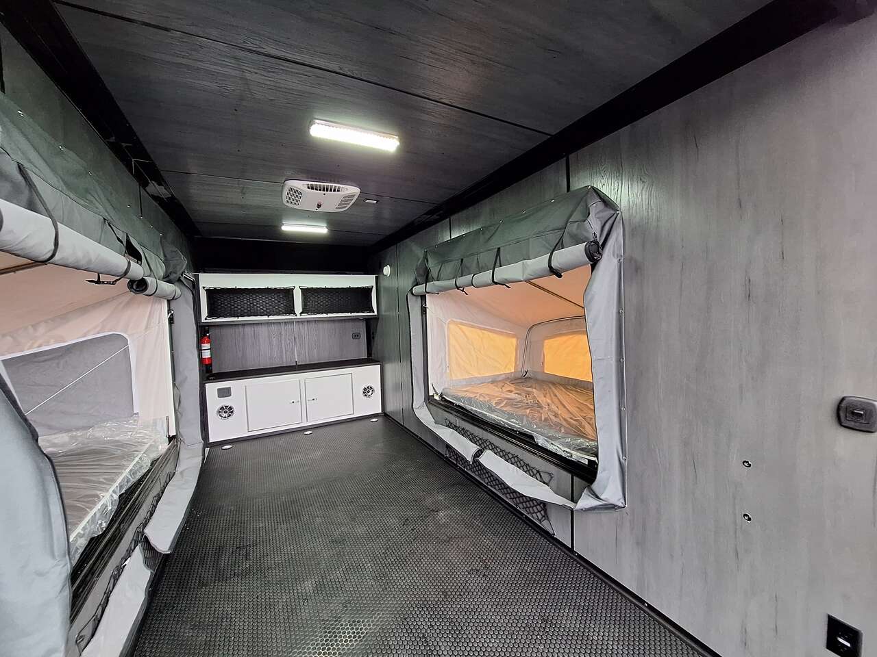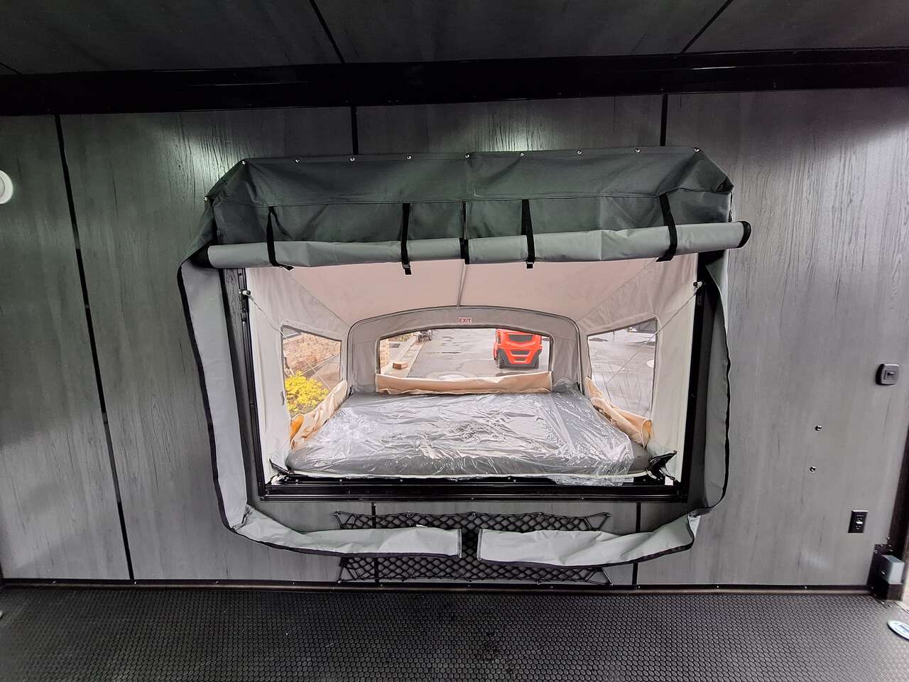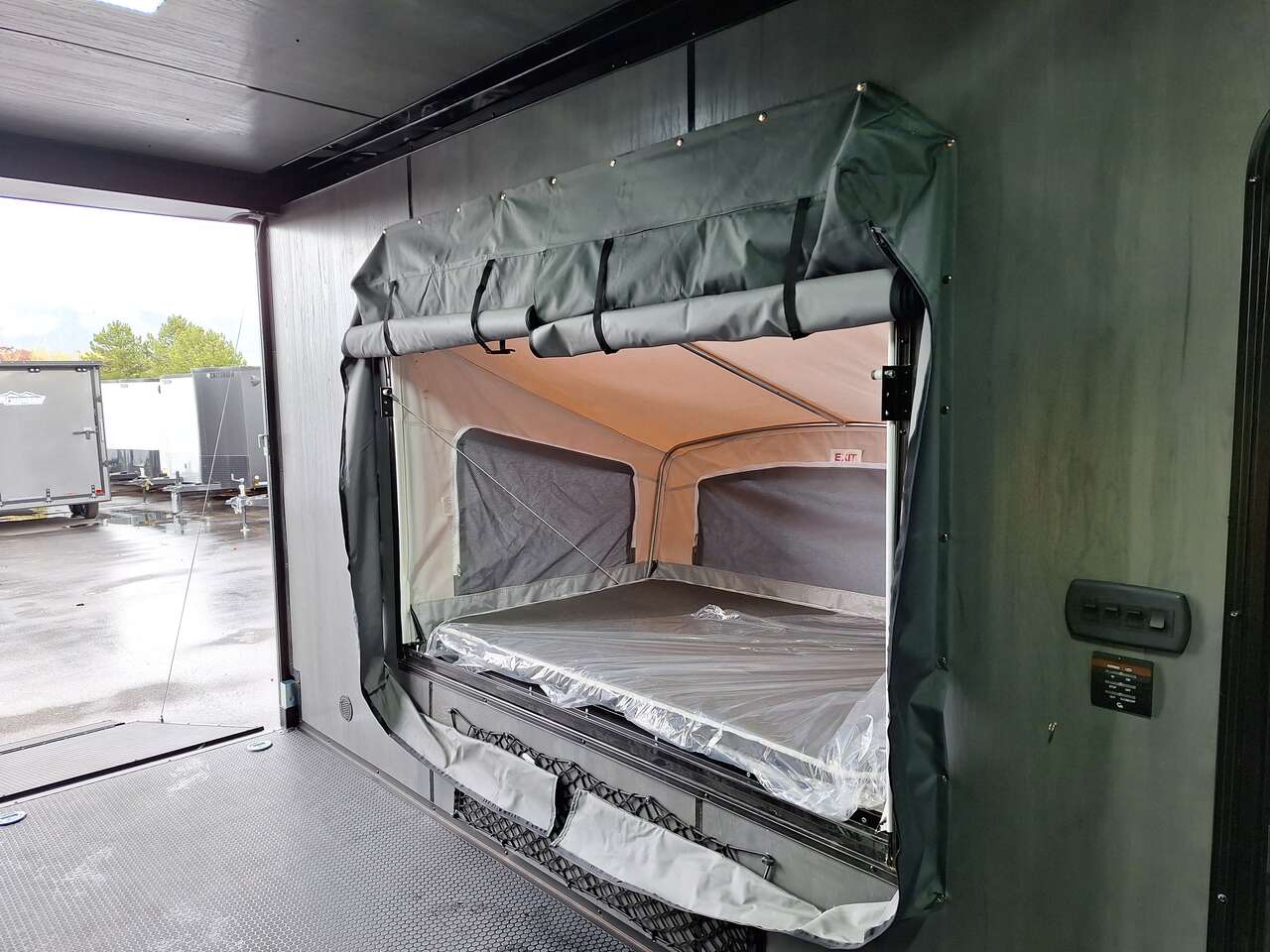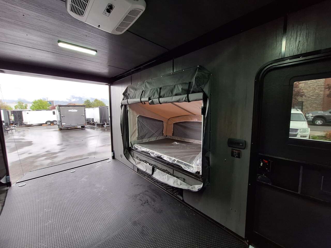 LIMITED TIME $228 A MONTH WITH ZERO DOWN WITH OUR SPECIAL LOCAL CREDIT UNION PARTNER!!! NO PRE-PAYMENT PENALTIES!!! NEW 2025 MODEL!!! WILL FIT ANY STOCK SIDE BY SIDE UTV!!! RAYNGER PREMIUM OFF ROAD TOY HAULER CAMPER!!! 18 INCH GROUND CLEARANCE!!! OFF ROAD TIRES!!! FULLY INSULATED!!! HEATING AND A/C!!! WET SOUND STEREO!!! TWO FOLD OUT/POP OUT TENTS WITH MATTRESS!!! CARGO BASKET!!! LED LIT AWNING!!! 84 Inch Rear Entry Height/87 INCH INTERIOR HEIGHT!!! 77 Inch Rear Entry Width!!! Aluminum Ventilated Locking Generator Box!!! UPGRADED TORSION AXLES!!! 14.2 Foot Long Garage Space!!! And Much MUCH MORE!!! Check out our Specs!!! Also available in 18 foot models. 18 Foot Models can have 3 Fold Out Beds/Pop Out Tents. 16 Foot and 18 Foot Models will fit ANY stock 4 Seater Side by Side • 6” I Beam Frame• Flat Top Design• Flat Front Design• Wall Posts 16” on Center• Cross Members 16” on Center• Roof Bows 16” on Center• Rust Inhibiting Z-Tech Protection on Chassis• Ameraguard on Tongue• Ameraguard on Rear Bumper• Ameraguard Around All Door Openings and Stepwell• Ameraguard Around Edges of Ramp Door• 3500 LB Spring Axles• 2-5/16” Coupler• One-Piece Aluminum Roof• ST235/75R15 Aluminum Wheels with Chrome Center Caps• 2000# Ramp Door with Eberhard Latch• 30” Tempered Glass RV Door with Screen Door• .030 Exterior Metal with Screwless Sides• 24” Black Stoneguard• 3” Black Bottom Trim• Sand Pad• Black Door Hold• 2.7mm Charcoal Textured Vinyl Ceiling • 9mm Charcoal Textured Vinyl Walls• 3/4” Engineered Wood Floor with Rubber Coin Overlay• (6) 1200 LB Floor D rings Installed with Backer Plates• LED Clearance Lights and Tail Lights• LED Back-up Lights• No Show Wheel Box• Spoiler with Toggle Switch• RV Step• 7’ Interior• (2) 17” Chrome Base Lights with Switch• (1) Black 17” Spot Light with Switch• (1) 30 Amp Panel with Marine Plug• A/C Unit with Heat Strip• (3) Interior Recepts• (1) Exterior Recept• 12V Battery and Charge Line• Prep for Backup Camera• Wet Sounds System• (3) Blue Interior Cabinet Lights• (1) 6’ Section of Flex Lights• Black ATP Rear Header and Hoop• Black ATP Fenders• Insulated Walls & Ceiling• Base Cabinets• Overhead Cabinets with Netting Over Compartments• Pop Out Tent• Black ATP Storage/Generator Box Mounted On Tongue SW091693