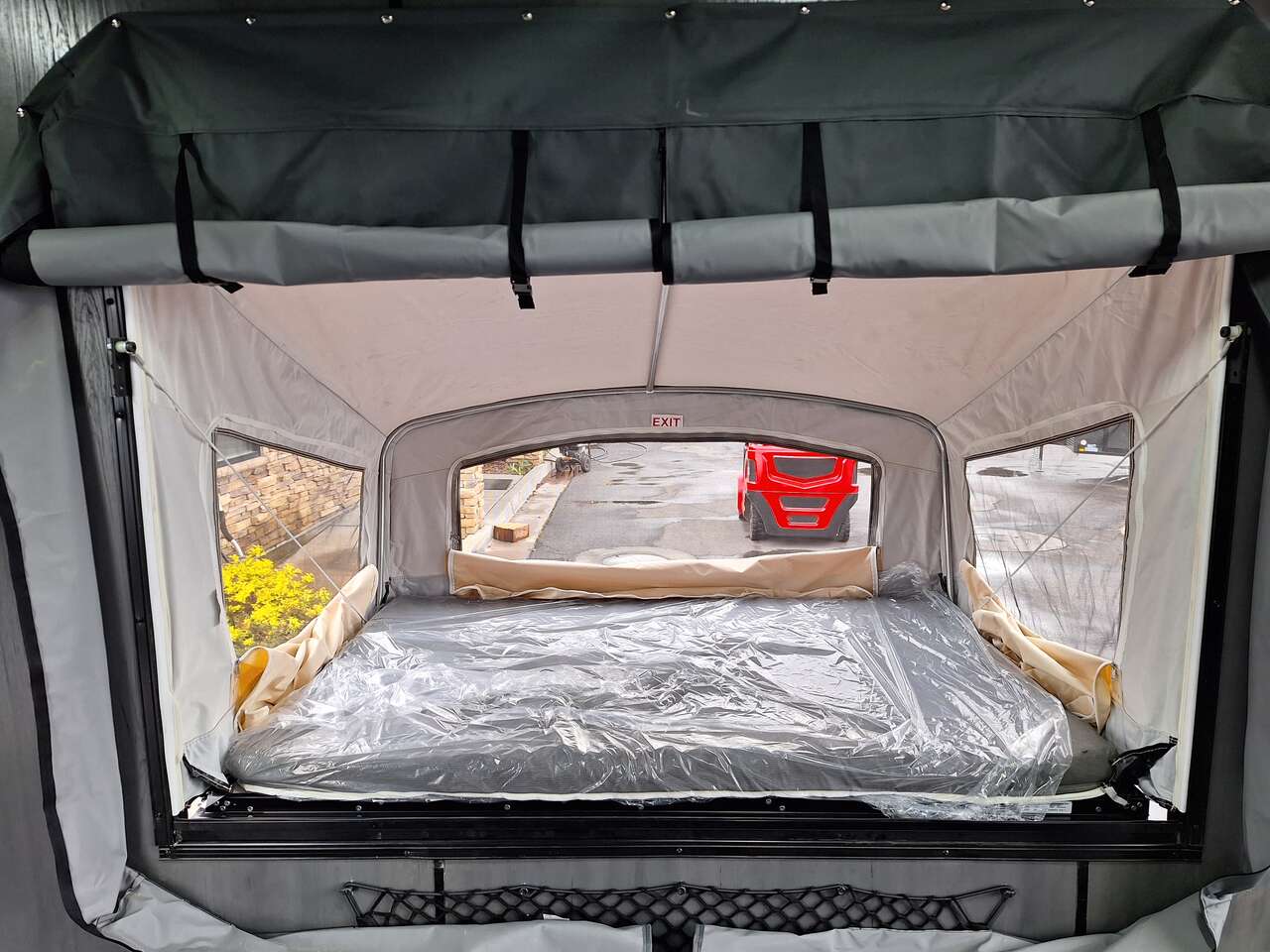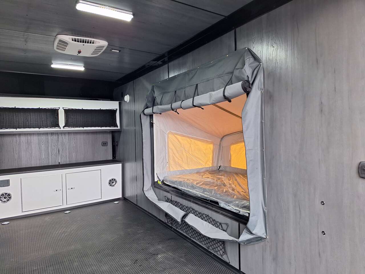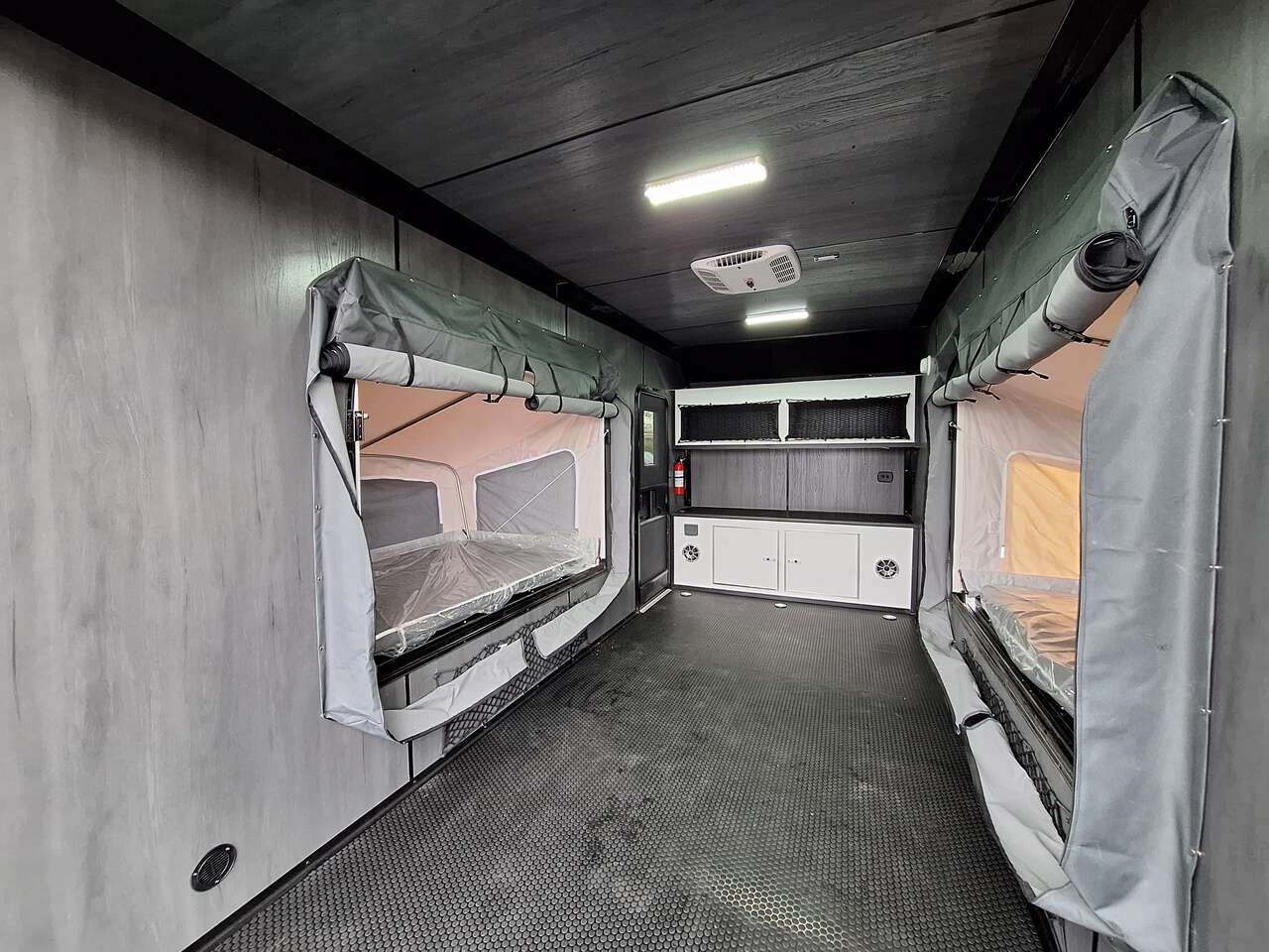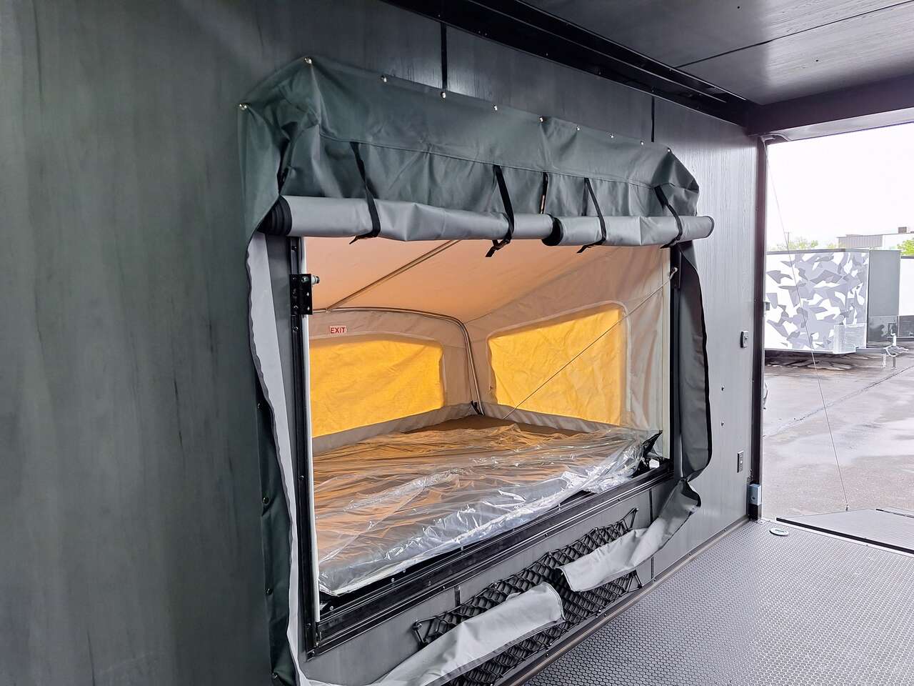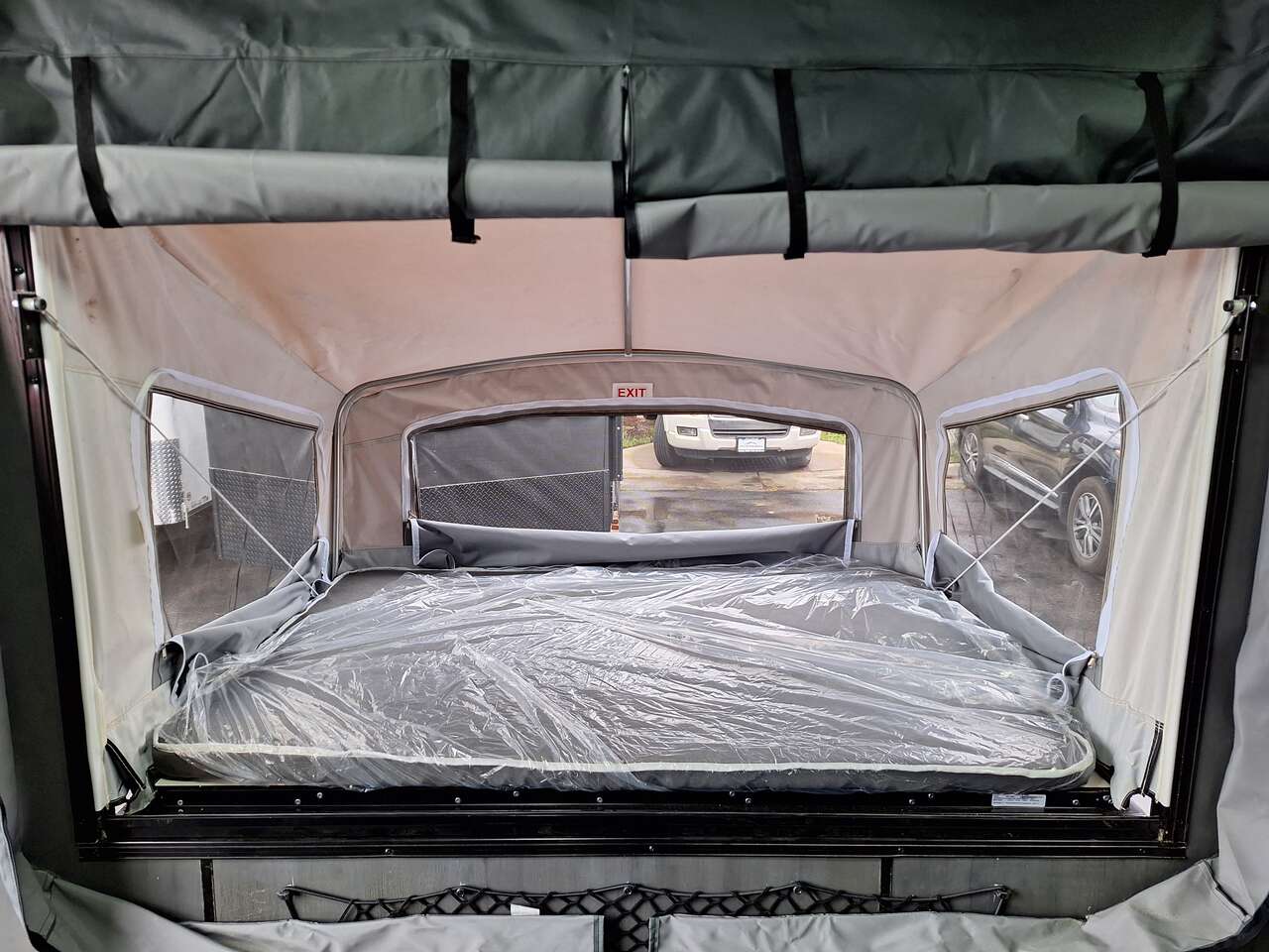 LIMITED TIME $228 A MONTH WITH ZERO DOWN WITH OUR SPECIAL LOCAL CREDIT UNION PARTNER!!! NO PRE-PAYMENT PENALTIES!!! NEW 2025 MODEL!!! WILL FIT ANY STOCK SIDE BY SIDE UTV!!! RAYNGER PREMIUM OFF ROAD TOY HAULER CAMPER!!! 18 INCH GROUND CLEARANCE!!! OFF ROAD TIRES!!! FULLY INSULATED!!! HEATING AND A/C!!! WET SOUND STEREO!!! TWO FOLD OUT/POP OUT TENTS WITH MATTRESS!!! CARGO BASKET!!! LED LIT AWNING!!! 84 Inch Rear Entry Height/87 INCH INTERIOR HEIGHT!!! 77 Inch Rear Entry Width!!! Aluminum Ventilated Locking Generator Box!!! UPGRADED TORSION AXLES!!! 14.2 Foot Long Garage Space!!! And Much MUCH MORE!!! Check out our Specs!!! Also available in 18 foot models. 18 Foot Models can have 3 Fold Out Beds/Pop Out Tents. 16 Foot and 18 Foot Models will fit ANY stock 4 Seater Side by Side • 6” I Beam Frame• Flat Top Design• Flat Front Design• Wall Posts 16” on Center• Cross Members 16” on Center• Roof Bows 16” on Center• Rust Inhibiting Z-Tech Protection on Chassis• Ameraguard on Tongue• Ameraguard on Rear Bumper• Ameraguard Around All Door Openings and Stepwell• Ameraguard Around Edges of Ramp Door• 3500 LB Spring Axles• 2-5/16” Coupler• One-Piece Aluminum Roof• ST235/75R15 Aluminum Wheels with Chrome Center Caps• 2000# Ramp Door with Eberhard Latch• 30” Tempered Glass RV Door with Screen Door• .030 Exterior Metal with Screwless Sides• 24” Black Stoneguard• 3” Black Bottom Trim• Sand Pad• Black Door Hold• 2.7mm Charcoal Textured Vinyl Ceiling • 9mm Charcoal Textured Vinyl Walls• 3/4” Engineered Wood Floor with Rubber Coin Overlay• (6) 1200 LB Floor D rings Installed with Backer Plates• LED Clearance Lights and Tail Lights• LED Back-up Lights• No Show Wheel Box• Spoiler with Toggle Switch• RV Step• 7’ Interior• (2) 17” Chrome Base Lights with Switch• (1) Black 17” Spot Light with Switch• (1) 30 Amp Panel with Marine Plug• A/C Unit with Heat Strip• (3) Interior Recepts• (1) Exterior Recept• 12V Battery and Charge Line• Prep for Backup Camera• Wet Sounds System• (3) Blue Interior Cabinet Lights• (1) 6’ Section of Flex Lights• Black ATP Rear Header and Hoop• Black ATP Fenders• Insulated Walls & Ceiling• Base Cabinets• Overhead Cabinets with Netting Over Compartments• Pop Out Tent• Black ATP Storage/Generator Box Mounted On Tongue SW091693