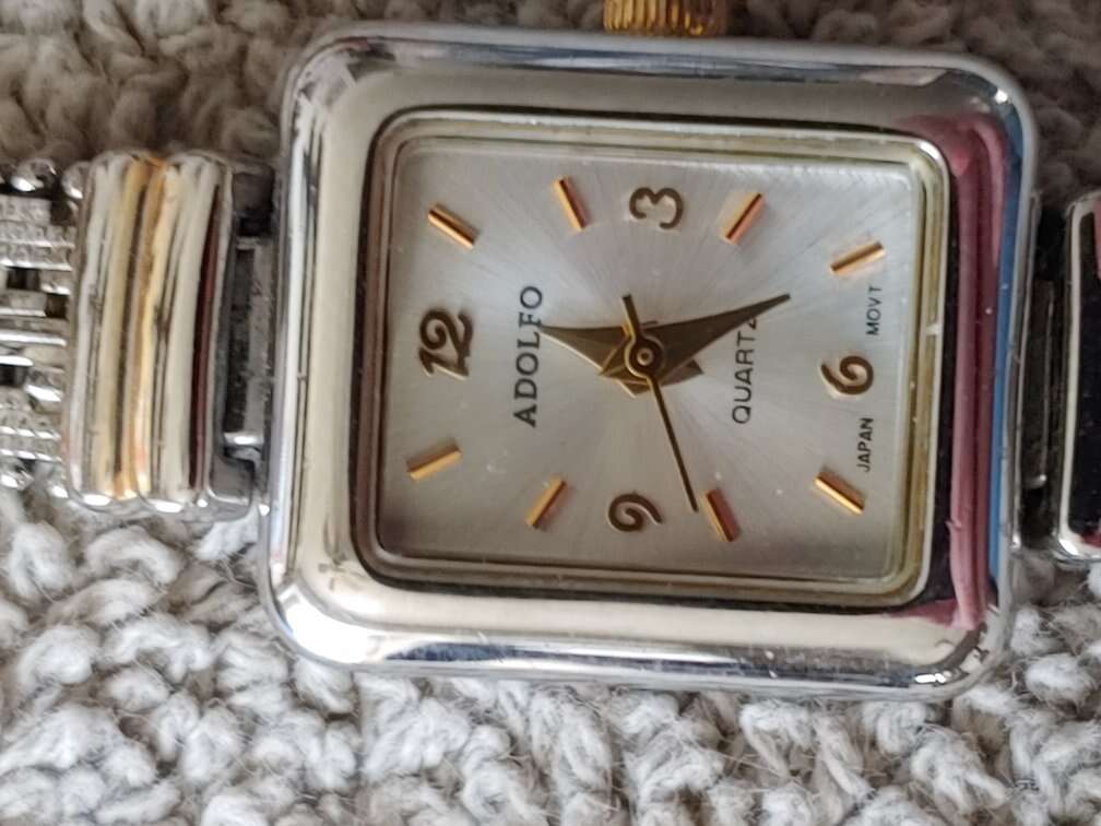 PayPalElevate your wrist game with this vibrant Adolfo Ladies Wristwatch that features Japanese Movement and a new battery. The brand Adolfo is known for its exquisite designs and high-quality products, and this wristwatch is no exception. The colorful combination of hues on the watch face adds a fun touch to your everyday style while its sturdy strap ensures comfort and durability. This wristwatch is perfect for women who want to add a pop of color to their outfits without compromising on functionality. With its reliable timekeeping and striking design, this Adolfo wristwatch is a must-have addition to your accessory collection. 10 dollars Or Best offer. Will ship Worldwide.