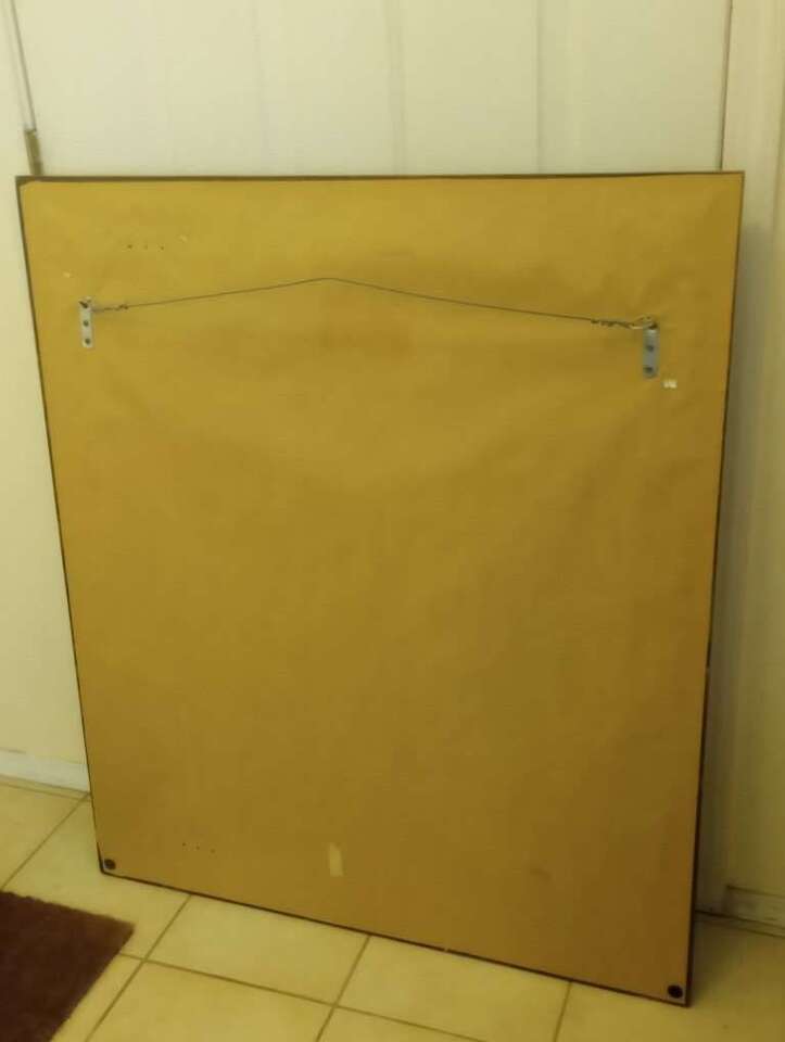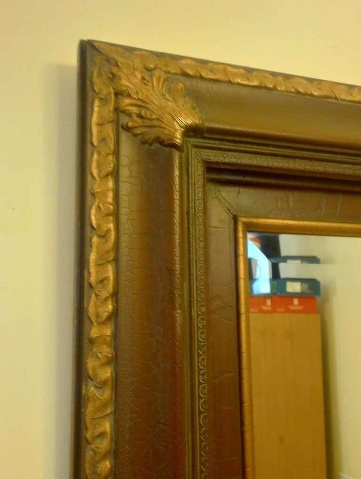 VenmoUsed--Large Mirror~~Brown & Gold~~ Measures 36 1/2" x 42 1/2". Has an antique-type look but is not antique. Has some unique and cool detail and texture on the frame that I tried to show in the pics. Has a wire hanger on the back. Has one very small flaw that I showed in the pic that we covered with paint and is not very noticeable. Other than that it is in excellent condition. From a smoke-free home. Have had this for several years but have taken very good care of it. It is good quality, and well built. Sturdy and a bit heavy. Price lowered to $30 cash or Venmo. Will hold with Venmo.