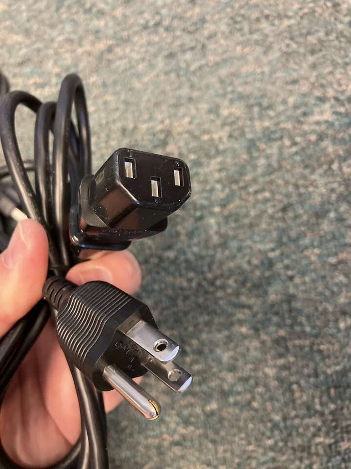 12 power cables. They go to monitors, computers, printers, etc. $5 for the whole amount.