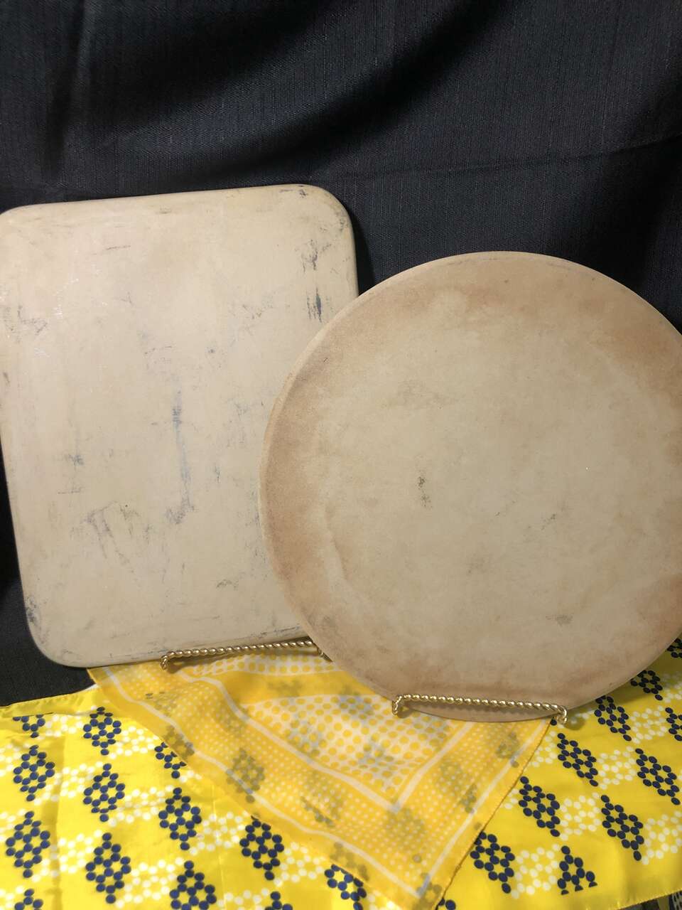 VenmoFun Fact*** Did you know the more you use a Pampered Chef Baking Stone, the darker it gets? That's called Seasoning! The more seasoned your stone is, the better food tastes and the cleaning is easier. Elevate your baking game with a Pampered Chef Heritage Collection stone in either a 15 round or a 15x12 rectangle baking stone. Crafted from durable stoneware material, these beige colored stones feature a non-stick surface coating that makes them easy to clean after baking. Ideal for preparing pizzas, these baking stones are compatible with electric and gas ovens. Make your baking experience a delightful one with a Pampered Chef Heritage Collection piece. $30 for each stone