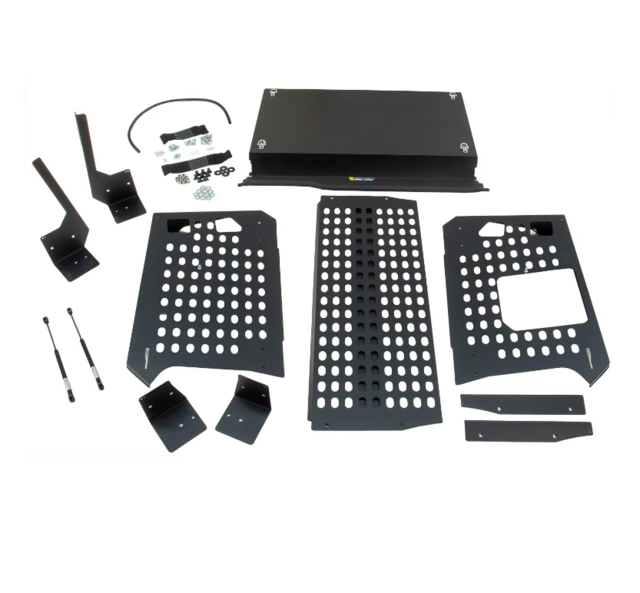 Sensitive items remain securely hidden from view with the top on or off MOLLE grid design allows use of MOLLE storage bags for organization Creates a secure area when the rear vehicle door is closed and locked Rubber perimeter seals for a rattle free drive No drill installation using existing mounting points For 4-door Bronco only Not Compatible with Raptor