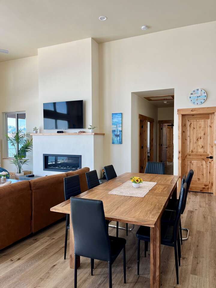 Beachfront Haven is located on the quiet, sunnier and warmer East side of the lake in a peaceful, private setting. You will be minutes from the charming towns of the Bear Lake Valley, including Garden City, where you can enjoy dining, shopping, a round of golf or a world-famous raspberry shake. Our house is located in an exclusive gated community on the East Side of Bear Lake with private boat ramp, pickleball, tennis, and basketball courts, all just steps from our home. The lake on this side is deeper, so perfect access for boating and swimming. All 6 bedrooms have their own baths, which works nicely for two or three families. Two offices and high-speed internet – ideal for remote work. Treat yourself to this special place! Rates differ by season and availability. For availability & rates for specific dates see www.vacasa.com/unit/99466.