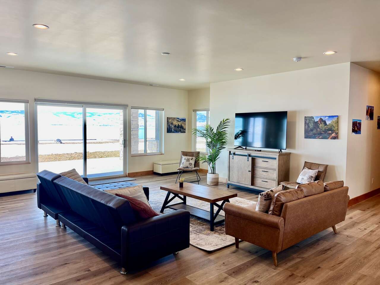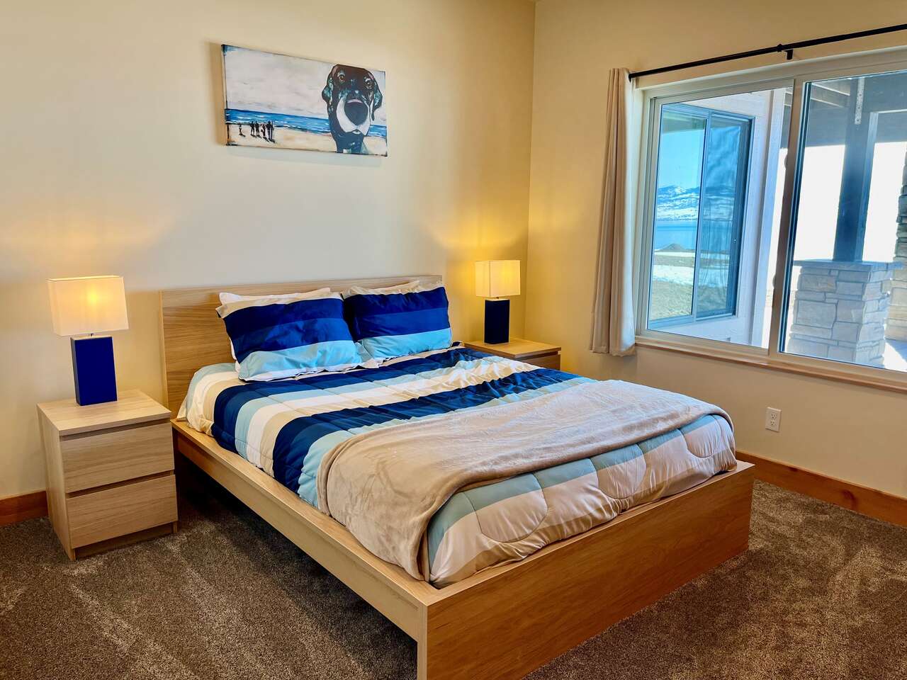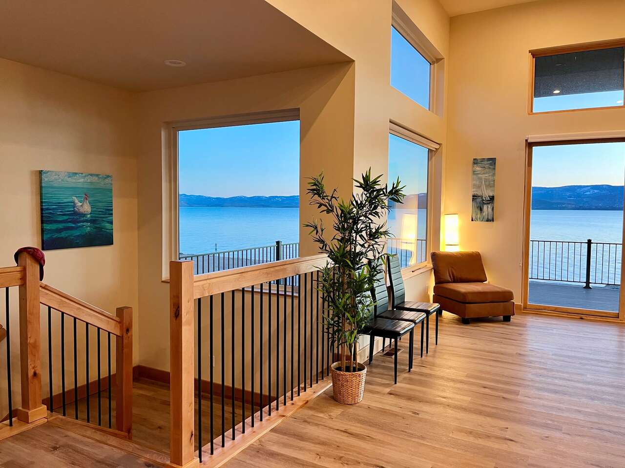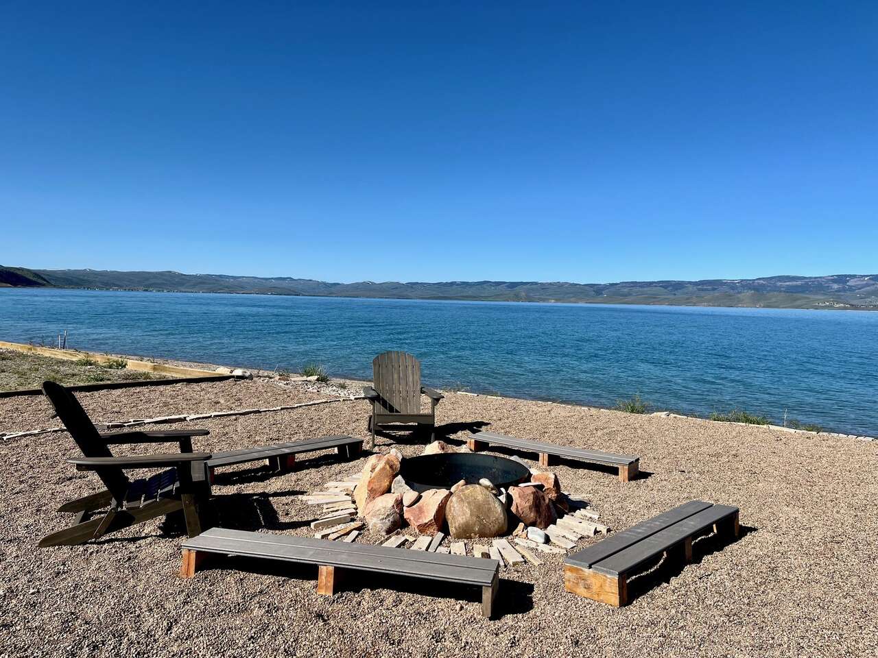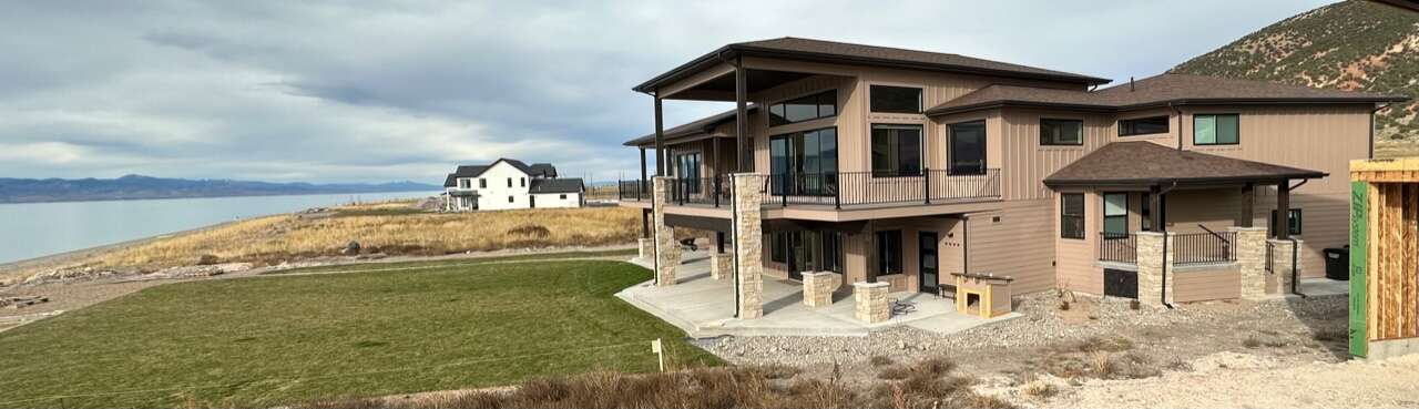Full description: Beachfront Haven is a stunning 6-bedroom 6-bathroom home that sleeps up to 18. Only 30 steps from the private beach, with a large grassy play area, perfect for relaxing on the sunny deck, boating, paddleboarding, kayaking, swimming. Enjoy the beach fires and s’mores at the beautiful beach fireplace. Sweeping lake and mountain views, amazing sunsets, and expansive outdoor areas. All 6 bedrooms offer serene lakeviews! A large deck with gorgeous views is wonderful for gathering and BBQs. The house is equipped for all generations – from sand toys and board games to a ping-pong table and basketball. It has direct access to Bear Lake's bike trail and nearby hikes.