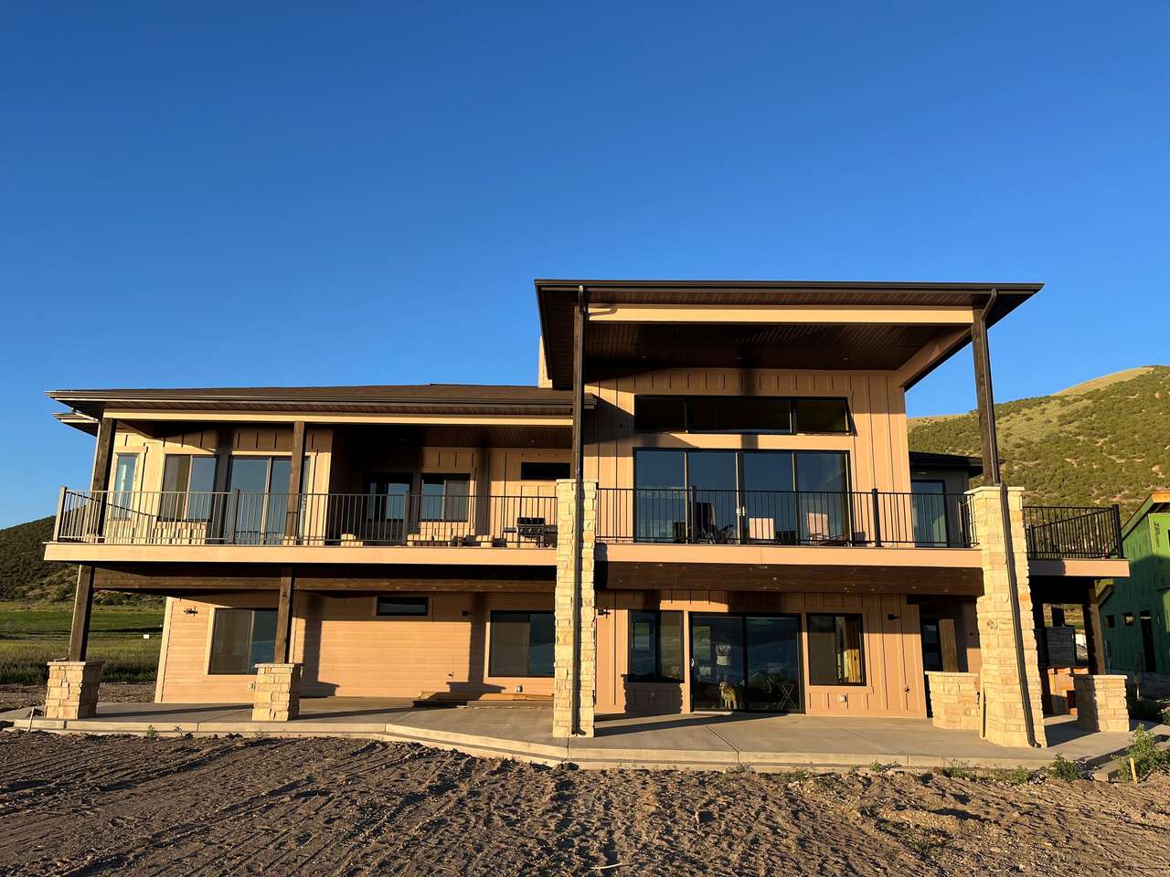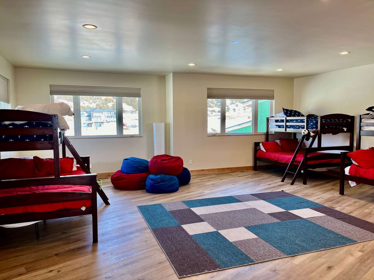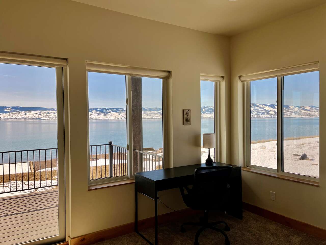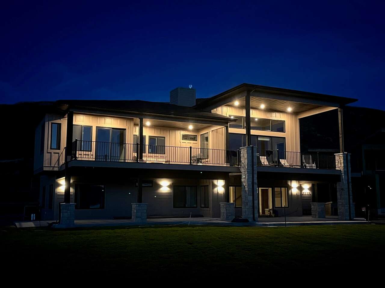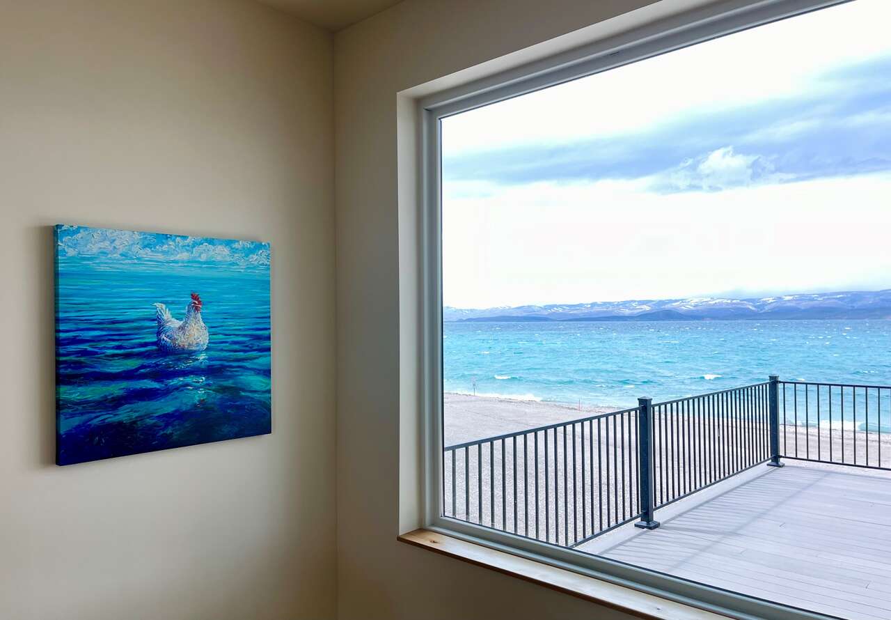 Full description: Beachfront Haven is a stunning 6-bedroom 6-bathroom home that sleeps up to 18. Only 30 steps from the private beach, with a large grassy play area, perfect for relaxing on the sunny deck, boating, paddleboarding, kayaking, swimming. Enjoy the beach fires and s’mores at the beautiful beach fireplace. Sweeping lake and mountain views, amazing sunsets, and expansive outdoor areas. All 6 bedrooms offer serene lakeviews! A large deck with gorgeous views is wonderful for gathering and BBQs. The house is equipped for all generations – from sand toys and board games to a ping-pong table and basketball. It has direct access to Bear Lake's bike trail and nearby hikes.