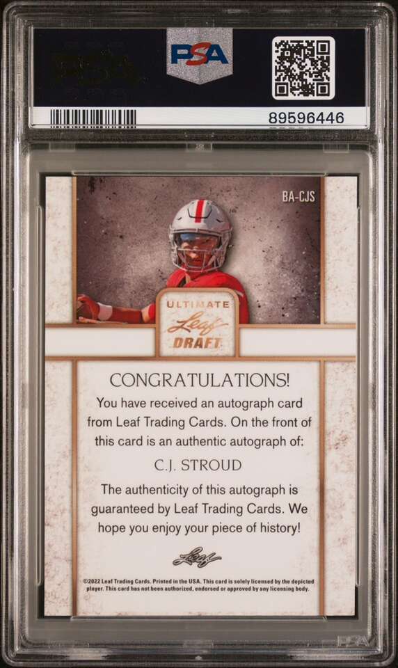 2022 Leaf Ultimate Draft CJ Stroud Autograph PSA 8 Houston Texans