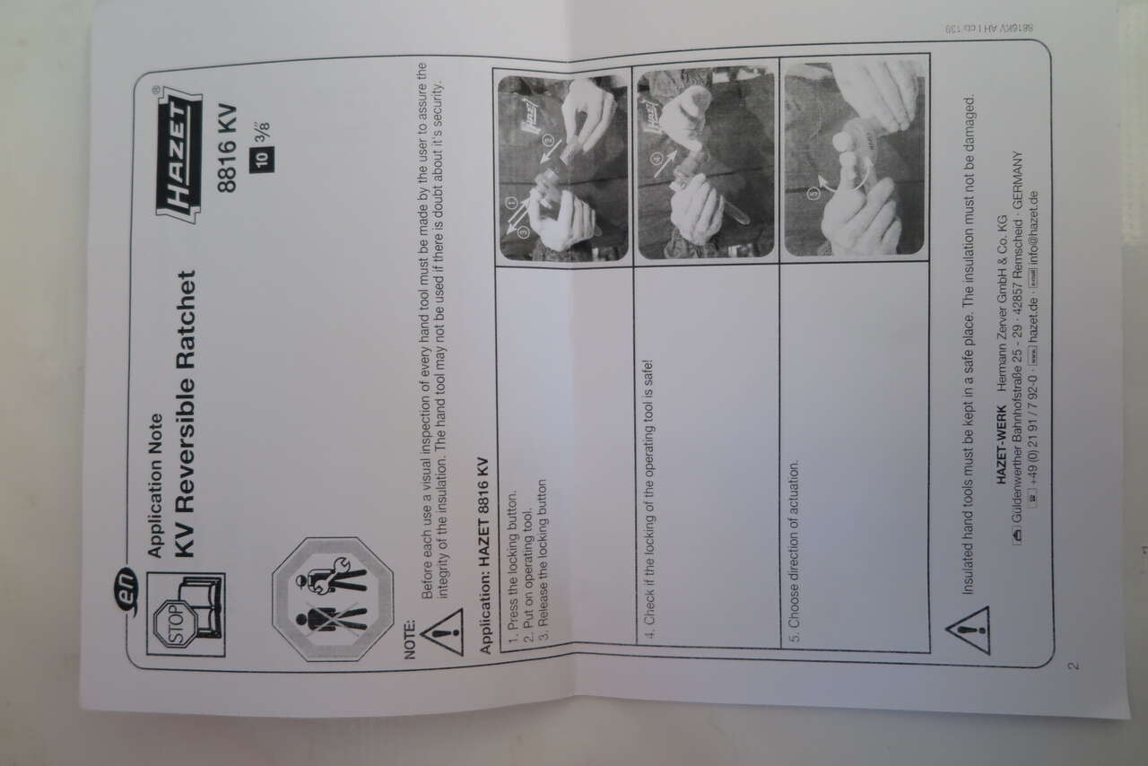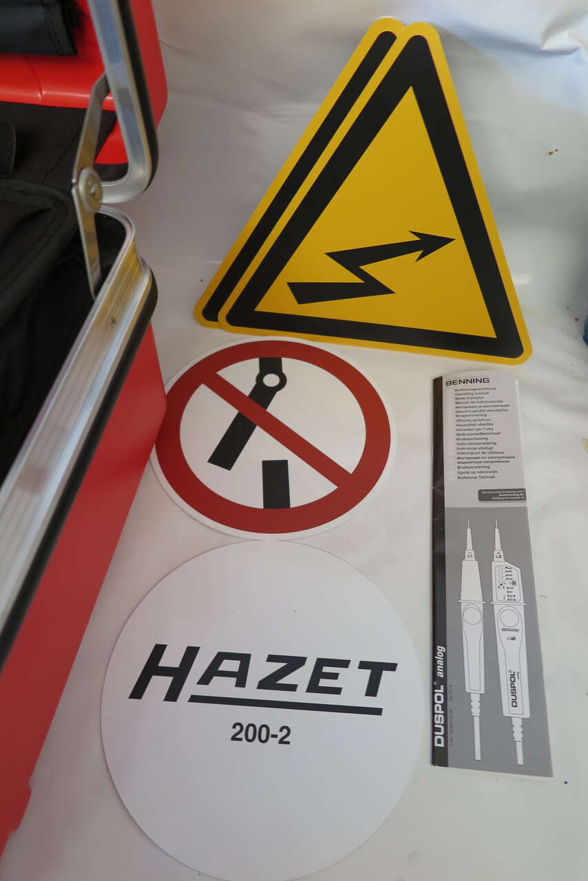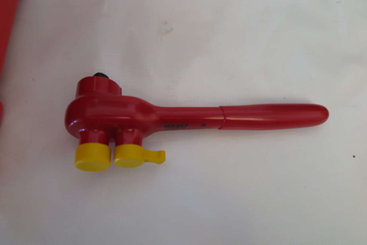 Hazet 150/52 Hybrid and Electric Vehicle High-voltage Tool Set, 52 Pieces, in trolley case Joint development with one of the leading car manufacturer and in accordance with the German TÜV SÜD Surface: with protective insulation (tested to 1,000V) Includes: 196V-10/5 End caps with self clamping ∙ 1000 V (5pcs) 196V-20/5 End caps with self clamping ∙ 1000 V (5pcs) Warning sign “Hybrid” Warning sign “Hybrid switch” Plastic barrier tape ∙ red / white blocked 759N-2VDE Universal pliers 810VDE-T20 Screwdriver for electricians 1804VDE-33 Cable shears 810VDE-25 0.4 x 2.5 mm Screwdriver for electricians 810VDE-PH1 Screwdriver for electrician 810VDE-T25 Screwdriver for electricians 810VDE-PH2 Screwdriver for electricians 810VDE-30 0.5 x 3 mm Screwdriver for electricians 810VDE-T30 Screwdriver for electricians 810VDE-35 Screwdriver for electricians 810VDE-PH3 Screwdriver for electricians 810VDE-40 0.8 x 4 mm Screwdriver for electricians 1802VDE-22 Heavy-duty diagonal cutter 1816VDE-22 Flat nose pliers 1841BVDE-33 Snipe nose pliers 1850VDE-44 Combination pliers 2156VDE-2 Cable stripping knife 8816KV 10 mm (3/8 inch) Reversible ratchet 8821KV-3 10 mm (3/8 inch) Extension 8821KV-5 Extension 10 mm 880KV-6 Socket ∙ hexagon Square 6 mm 8808LG-8KV Screwdriver socket Square M8 8808LG-10KV Screwdriver socket Square M10 8808LG-12KV Screwdriver socket Square M12 880KV-7 Socket 7 mm 880KV-8 Socket 8 mm 880KV-9 Socket 9 mm 880KV-10 Socket 10 mm 880KV-11 Socket 11 mm 880KV-12 Socket 12 mm 880KV-13 Socket 13 mm 880KV-14 Socket 14 mm 880KV-16 Socket 16 mm 880KV-17 Socket 17 mm 880KV-18 Socket 18 mm 880KV-19 Socket 19 mm 880KV-20 Socket 20 mm 880KV-22 Socket 22 mm Voltmeter