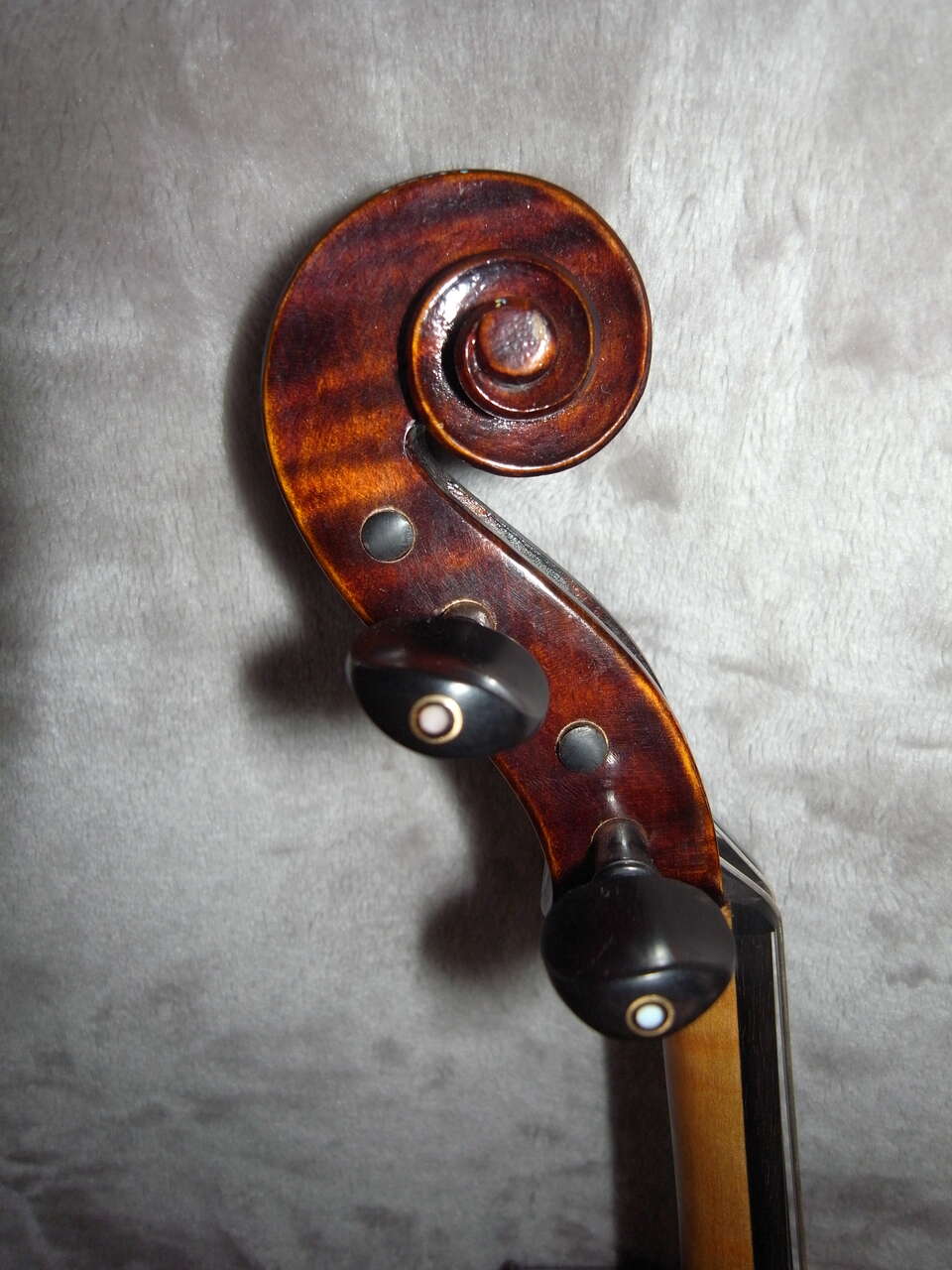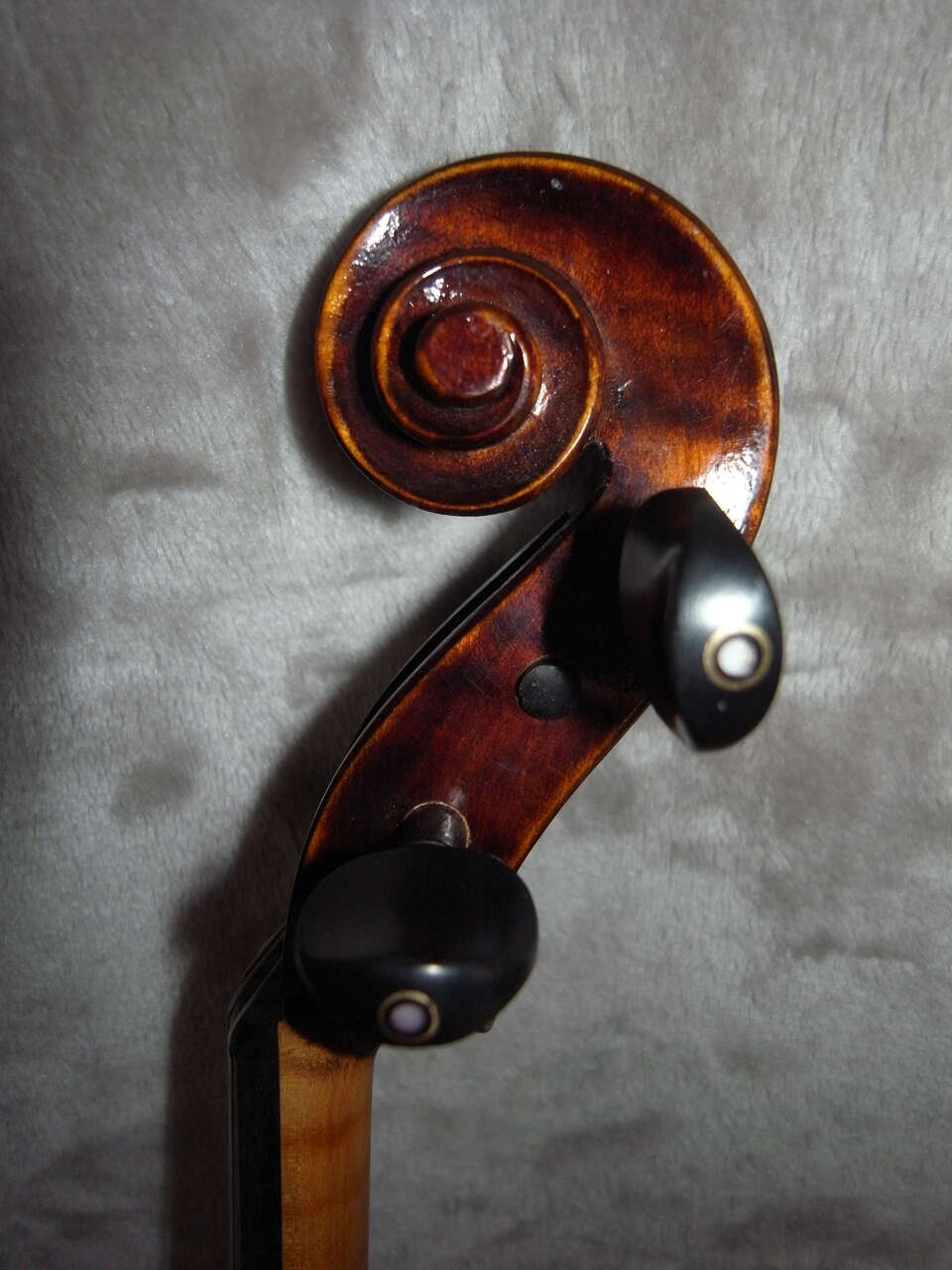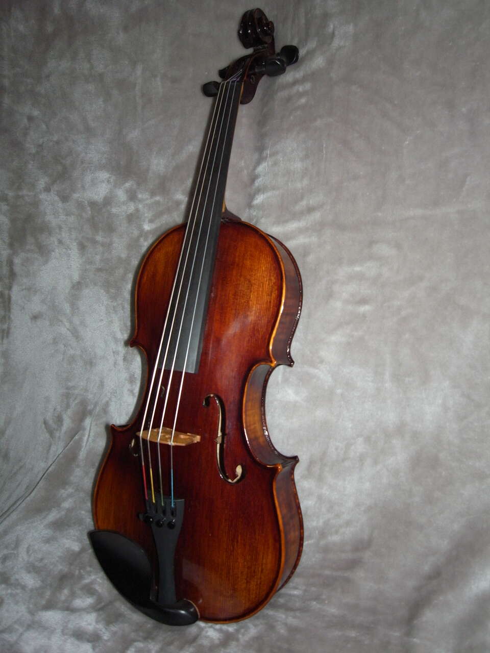 This Full Size (16") Viola was. It is a Stradivarius c 1721 Premium Intermediate Model. It was built from premium tone woods (maple back and ribs and spruce top) that was air dried 14+ years and was build by one luthier from beginning to end (not an assembly line factory built instrument.) It would be a great step up from most rental instruments or "student" instruments. It has stored in a humidified area, and is in "like new" condition. Price is firm. I will only accept cash This viola's spruce top has a beautiful and well defined fine grain. The back is two piece maple with medium symmetrical striation that continues through the ribs. It is finished with a Dark German oil varnish giving the viola satin luster and allowing the wood to breathe. The nut, bridge, tailpiece and sound post were recently adjusted by a well known local luthier that I trust. The fittings (tailpiece, chin rest, and tuning pegs) are traditional ebony with birds eye inlay, The tailpiece has a Wittner Stable Style fine tuner on the A string. It has been fitted Thomastik Dominant Strings. This is a gorgeous instrument. My daughter described it's tone to me as "balanced with exceptional volume and deep resonance." The construction of this instrument is such that it will deepen and develop an even more mature tone as it is played. It includes a student style case and a nice Brazilwood bow, case straps and a small box of rosin. You would be welcome to come by and play it. I also have a few other violas ranging from 15" to 16 1/2" 303