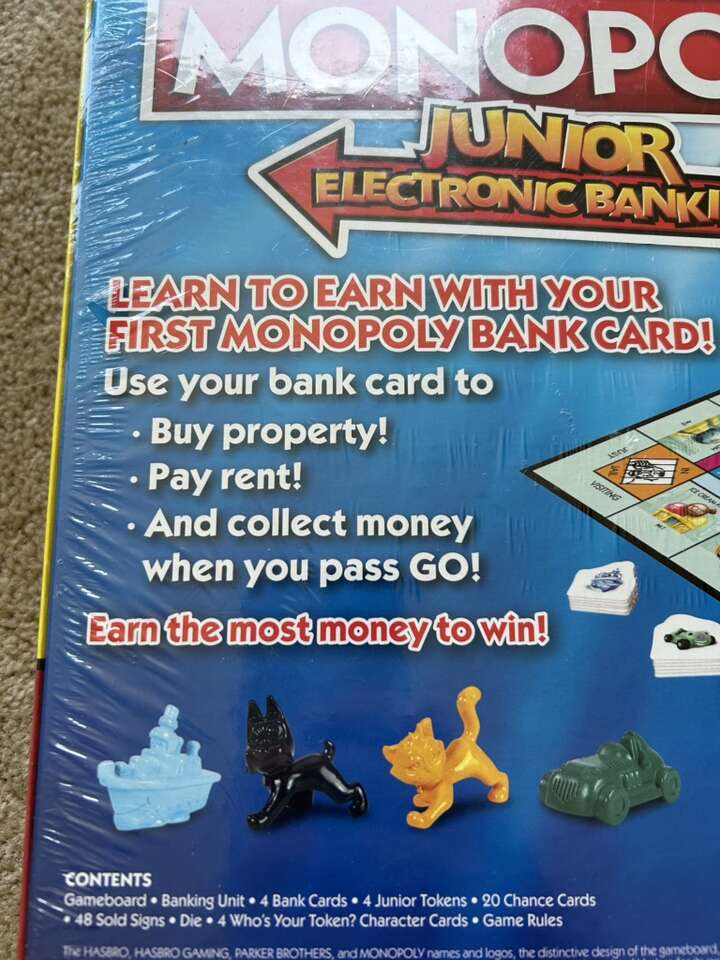 NEW (sealed in plastic) Monopoly Junior: Electronic Banking. The classic fast-dealing property game for kids. Ages 5+, 2-4 players. Hasbro, 2017. New, unopened condition. Text only. Cash or Venmo.