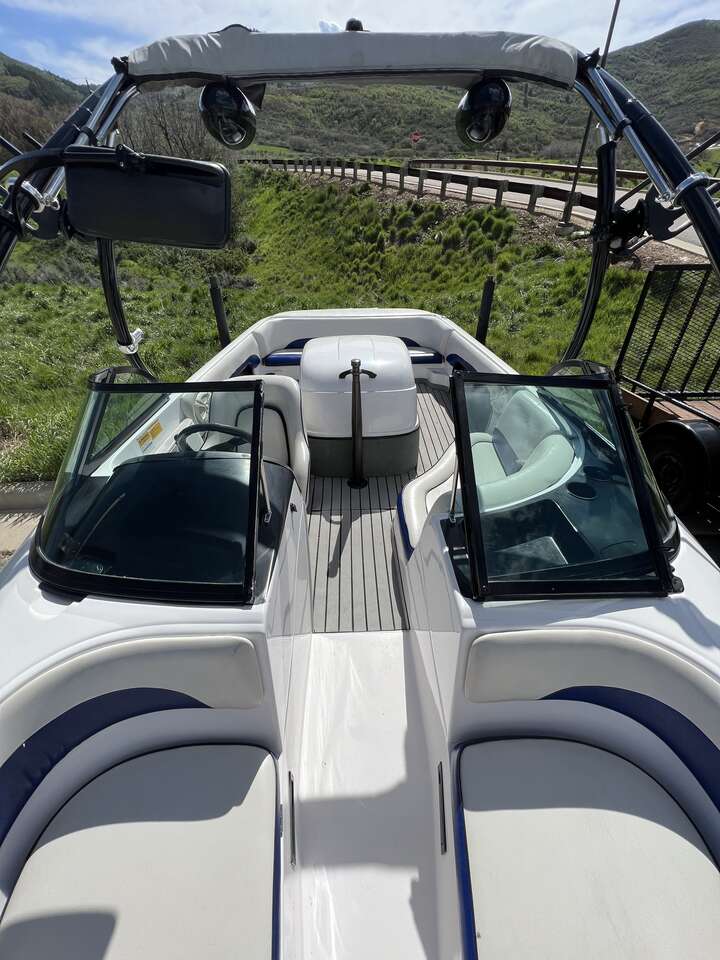 Very fun little ski boat turned surf boat. This thing can do it all! Recently re-done interior looks amazing. Indmar Assault 5.7 L 310 HP V8 engine. Fits 6-8 people comfortably. Includes 2 Origin Fat Sac ballast bags with water pump and a Mission Delta 2.0 wake shaper which boasts a surprisingly good surf wave for a small ski boat. With just over 570 hours still plenty of healthy years ahead for this boat. Sure to be a great summer out on the lake!