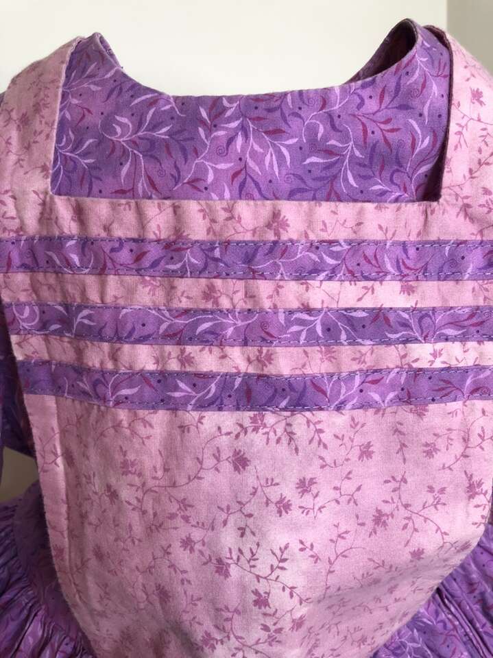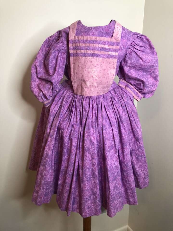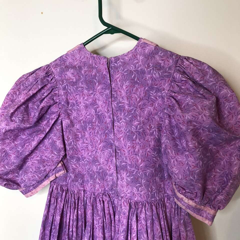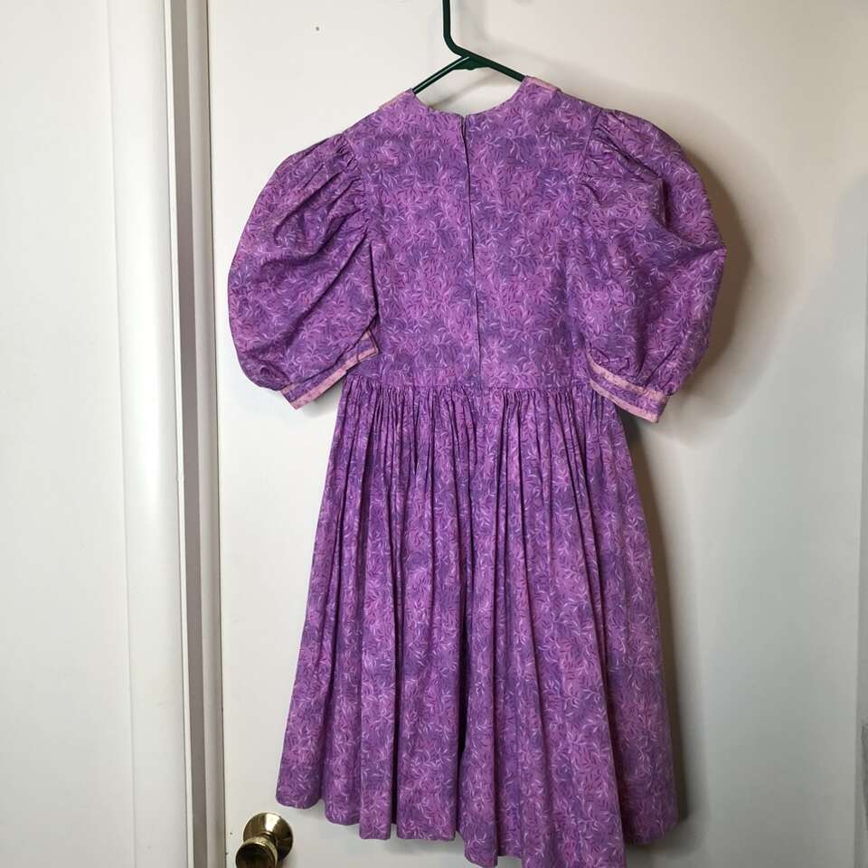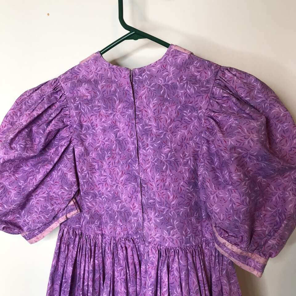 Home-Made One-of-a-Kind Dress Cottagecore Prairie Country Homespun Pioneer Farmhouse type dress great for TREK, and with a few simple alterations it would be perfect especially with its full– circle gathered skirt is exactly what the pioneers wore!! Fun fabric in a Lighter color is also better than a dark fabric. Dress has thick 2” hem to make it longer & a ruffle can be added to make it ankle length. Stylish Puffed sleeves can have regular sleeves added for sun protection. contrasting details on a well constructed dress. Please measure carefully since I’m not sure of the size. Measurements taken on dress laying flat: Waist is 25”. Pit to Pit 13 3/8th”. Sleeve cuff 10” circumference. Length neck to waist: 12”. Waist to hem 19”. Has 2” hem that can be let out. Fun for dress-up. No rips, tears, stains or defects. Smoke free. Photographs are of the exact dress that you are purchasing.