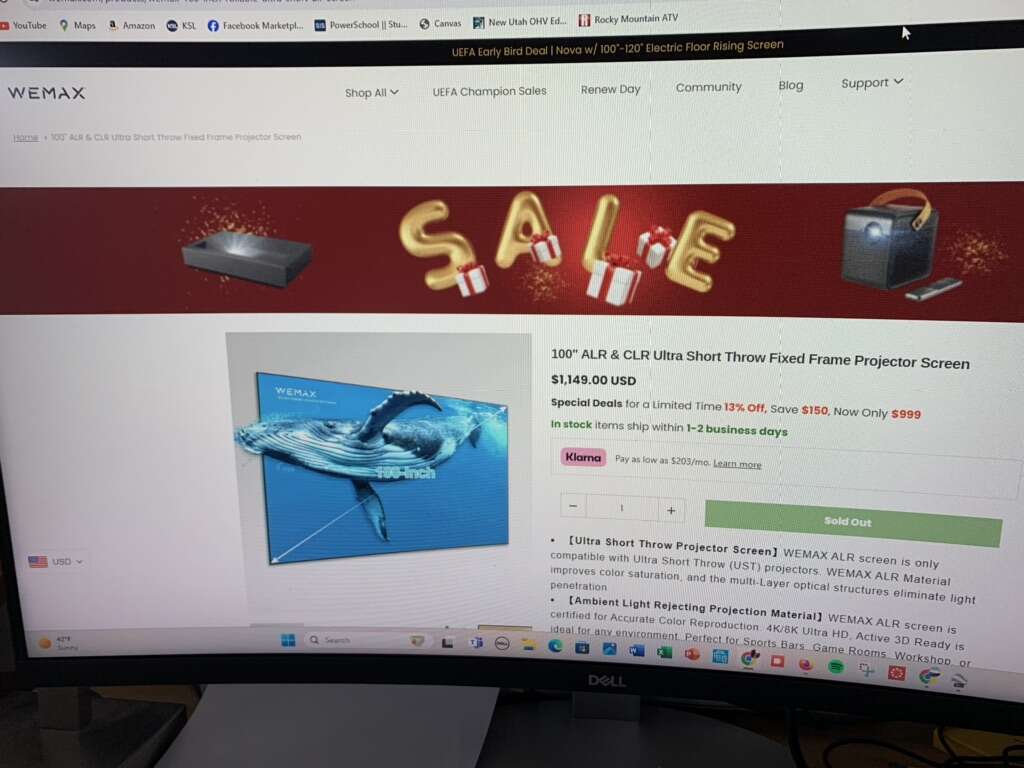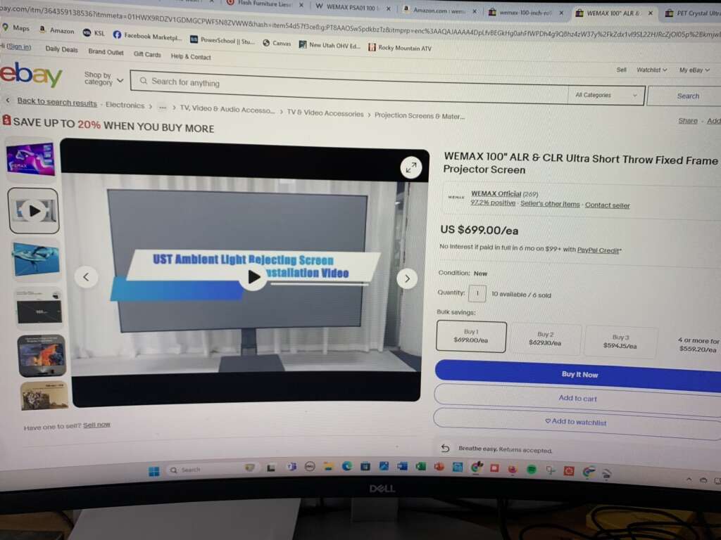VenmoGreat Deal! I have a 100 inch ALR & CLR ultra short throw fixed frame projector screen for sale. This screen is only compatible with ultra short Throw (UST) projectors. The manufacturer says that these are great for sports bars, game rooms, workshops, or any outdoors/indoor entertainment applications. Premium color and excellent product! WEMAX sells these for $1149 but I found some on eBay for $699. Asking $499 OBO.