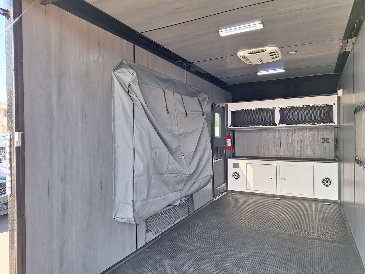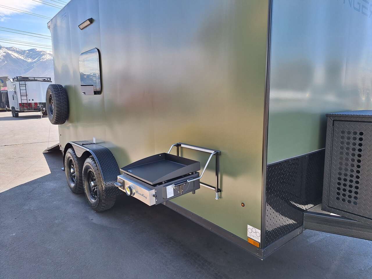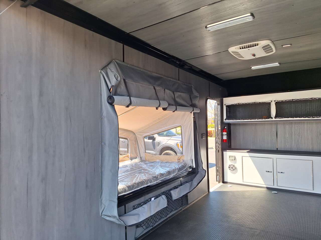 LIMITED TIME $185 A MONTH WITH ZERO DOWN WITH OUR SPECIAL LOCAL CREDIT UNION PARTNER!!! NO PRE-PAYMENT PENALTIES!!! NEW 2025 MODEL!!! FITS ANY STOCK SIDE BY SIDE UTV!!! RAYNGER PREMIUM OFF ROAD TOY HAULER CAMPER!!! 18 INCH GROUND CLEARANCE!!! OFF ROAD TIRES!!! FULLY INSULATED!!! HEATING AND A/C!!! WET SOUND STEREO!!! FOLD OUT/POP OUT TENT WITH MATTRESS!!! 84 Inch Rear Entry Height/87 INCH INTERIOR HEIGHT!!! 77 Inch Rear Entry Width!!! Aluminum Ventilated Locking Generator Box!!! UPGRADED TORSION AXLES!!! 14.2 Foot Long Garage Space!!! And Much MUCH MORE!!! Check out our Specs!!! Also available in 18 foot models. 18 Foot Models can have 3 Fold Out Beds/Pop Out Tents. 16 Foot and 18 Foot Models will fit ANY stock 4 Seater Side by Side • 6” I Beam Frame• Flat Top Design• Flat Front Design• Wall Posts 16” on Center• Cross Members 16” on Center• Roof Bows 16” on Center• Rust Inhibiting Z-Tech Protection on Chassis• Ameraguard on Tongue• Ameraguard on Rear Bumper• Ameraguard Around All Door Openings and Stepwell• Ameraguard Around Edges of Ramp Door• 3500 LB Spring Axles• 2-5/16” Coupler• One-Piece Aluminum Roof• ST235/75R15 Aluminum Wheels with Chrome Center Caps• 2000# Ramp Door with Eberhard Latch• 30” Tempered Glass RV Door with Screen Door• .030 Exterior Metal with Screwless Sides• 24” Black Stoneguard• 3” Black Bottom Trim• Sand Pad• Black Door Hold• 2.7mm Charcoal Textured Vinyl Ceiling • 9mm Charcoal Textured Vinyl Walls• 3/4” Engineered Wood Floor with Rubber Coin Overlay• (6) 1200 LB Floor D rings Installed with Backer Plates• LED Clearance Lights and Tail Lights• LED Back-up Lights• No Show Wheel Box• Spoiler with Toggle Switch• RV Step• 7’ Interior• (2) 17” Chrome Base Lights with Switch• (1) Black 17” Spot Light with Switch• (1) 30 Amp Panel with Marine Plug• A/C Unit with Heat Strip• (3) Interior Recepts• (1) Exterior Recept• 12V Battery and Charge Line• Prep for Backup Camera• Wet Sounds System• (3) Blue Interior Cabinet Lights• (1) 6’ Section of Flex Lights• Black ATP Rear Header and Hoop• Black ATP Fenders• Insulated Walls & Ceiling• Base Cabinets• Overhead Cabinets with Netting Over Compartments• Pop Out Tent• Black ATP Storage/Generator Box Mounted On Tongue SW091696