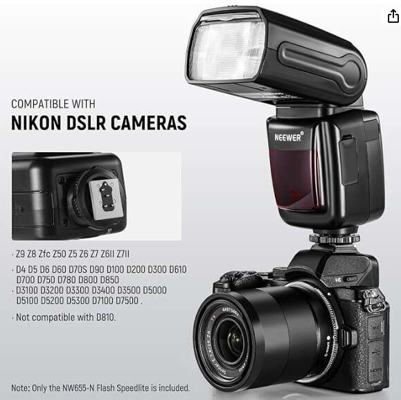 Powered by 4 x AA batteries or a 2500mAh Ni MH battery (all not included) for up to 230 times of full power flashes, 0.1-2.6s recycling time and a flash duration from 1/300 to 1/20000s. Also support 1/8000s high speed sync and front and rear curtain sync, capturing stunning moments