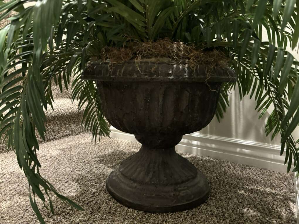 Fake fern, about 36” in diameter spread, about 30” tall. A little dusty from storage, but looks great. Base is about 12” round in diameter.