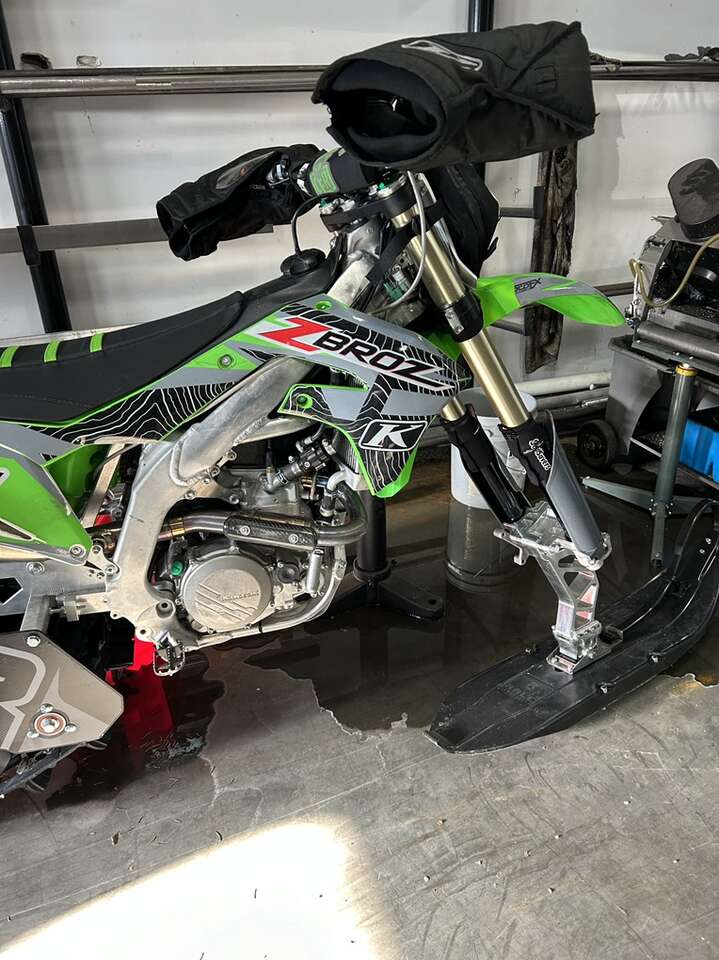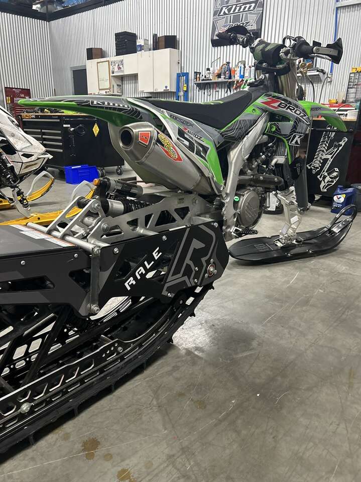 VenmoGreat bike, great snow bike kit ready to go for summer or winter. All bike parts go back on in just a few minutes for summer use. Bike runs awesome and the kit works really good on the snow. Some extras with the bike kit like a Zbroz Shock for the Rale kit and Roto pax fuel can system. Thermostat installed currently and an engine jacket comes with. Extra filters, well maintained and cared for bike and kit.