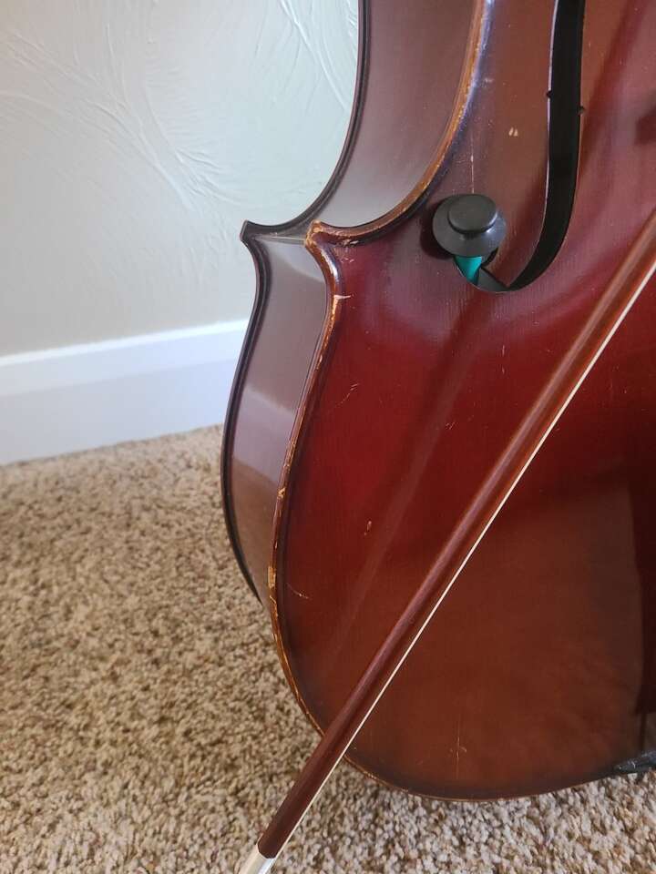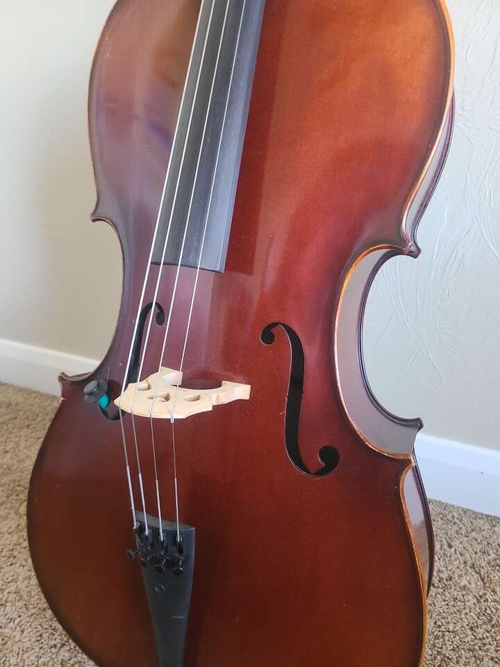 Beautiful mellow sounding cello in good condition. Comes with hard case, bow, and rosin.