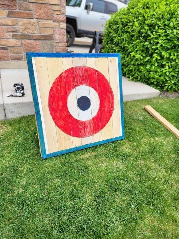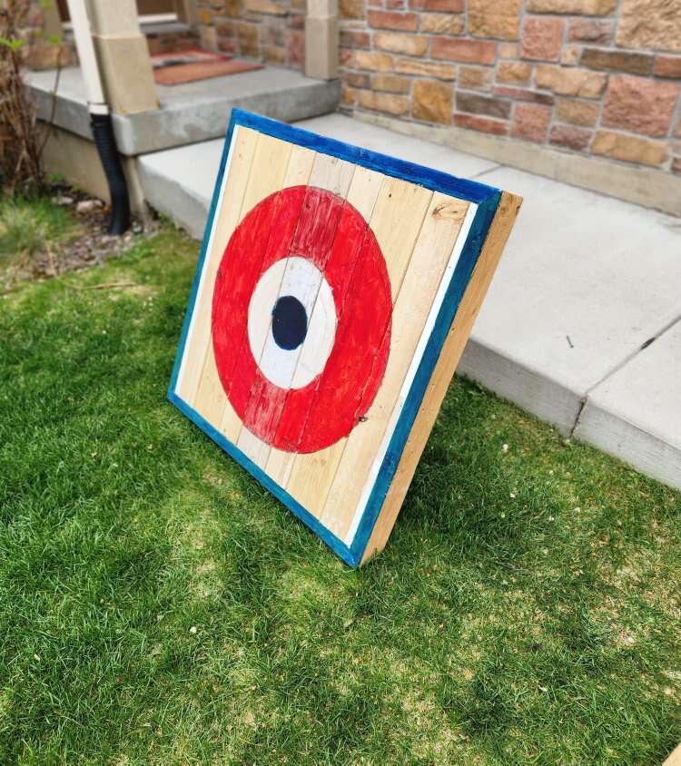 Reclaimed wood axe throwing targets. Stand up for lawn use.