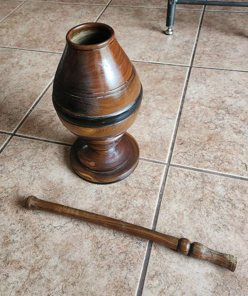15" tall and 8" in diameter. Brazilian hand-turned.