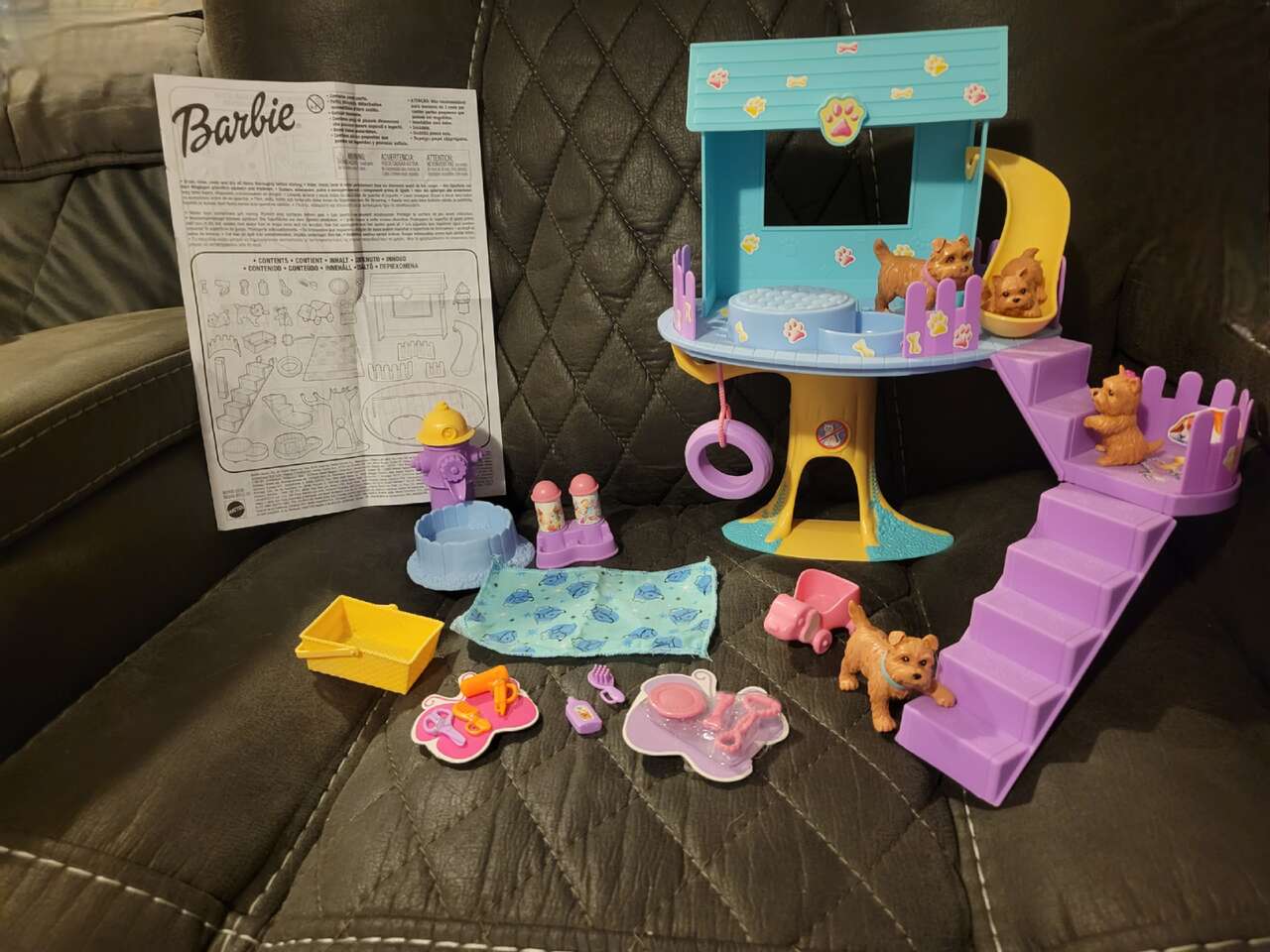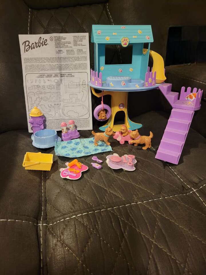 Barbie POSH PETS, PET DOG PARK tree house Playset with 4 DOGS, Slide, PUMPING HYDRANT, Toys, Food Dish, And LOTS MORE ACCESSORIES!