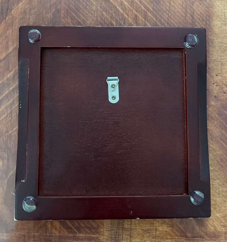 Burgundy tiled and wood contour trivet, French floral shop, some wear from use. Fundraising item PU in Woods Cross