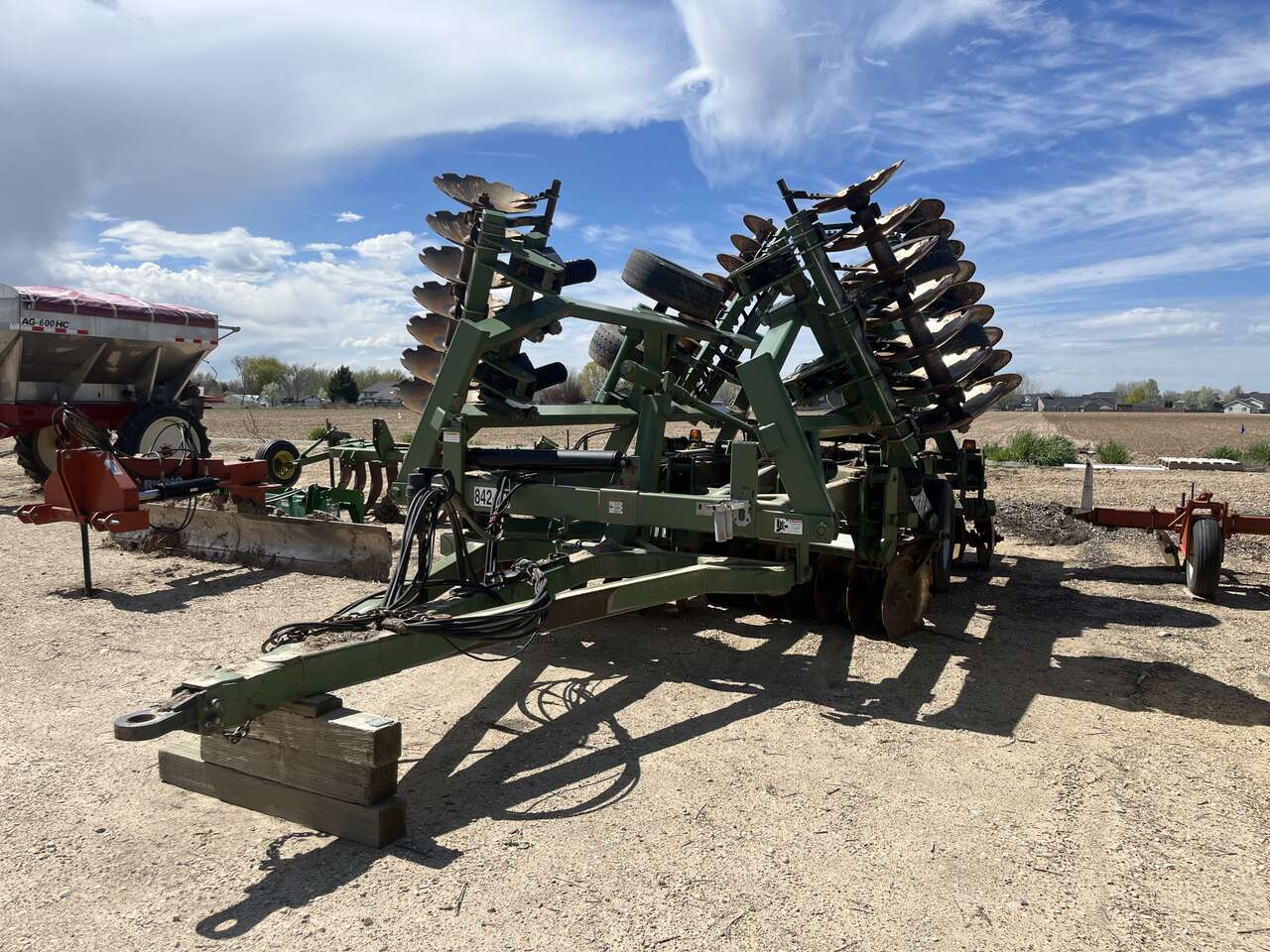 This is a 1995 Wishek 842NT-26 Disk. Equipment includes: 26' working width, cushion gangs, new front disks, new scrapers, new bearings, rear hitch, hose hooks, travel lock. Give us a call or come in and see it for yourself. Give us an opportunity to provide you with a solution to your agricultural needs and you, the American farmer, will succeed. Equipment located in Nampa ID.