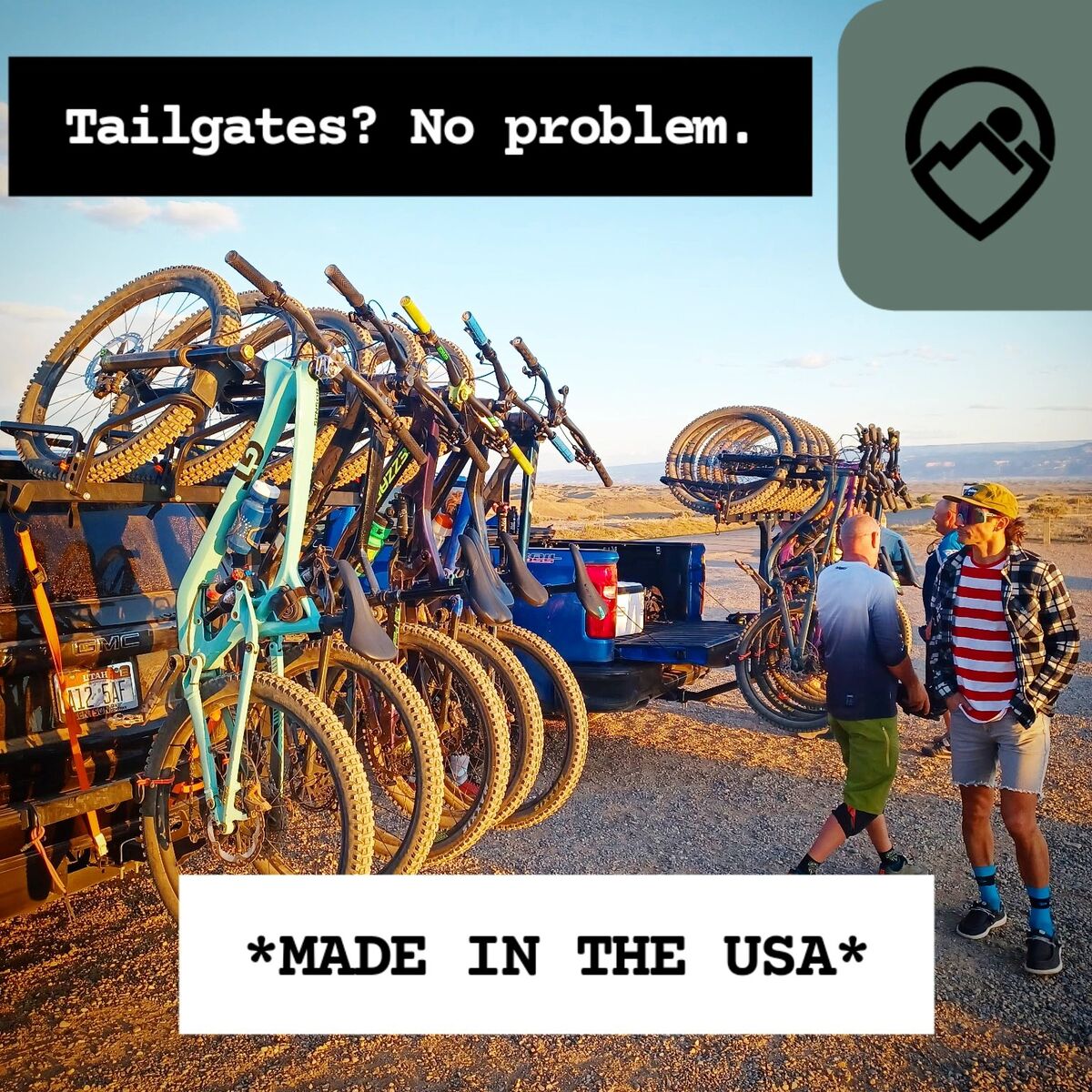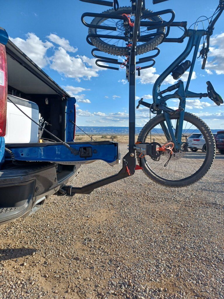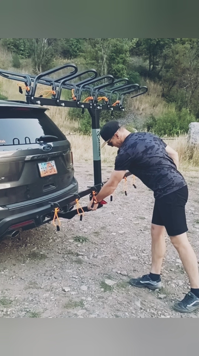 Best-in-class spacing: 12” between bikes Holds up to 350lbs total (6-place rack) Fits 2” hitch receivers, 3 install positions Anti-wobble hitch stabilizer included Clears most tailgates & spare tires (Including the new Tacoma) Professionally designed & built in Utah, USA Highest quality powder coating Save by bundling your upgrades! Foot-activated tilt latch Threaded hitch pin Stabilizer straps & anchors