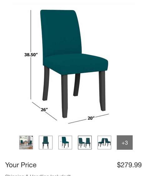 Available in Teal 100% Polyester fabric upholstery Solid wood legs in a dark Brown finish Sinuous springs Foam and polyester fiberfill for just-right support Weight capacity: 300 Lbs. Interior width of seat: 20” Interior depth of seat: 18.25” Chair seat height: 20” Assembly required Chair Dimensions:
