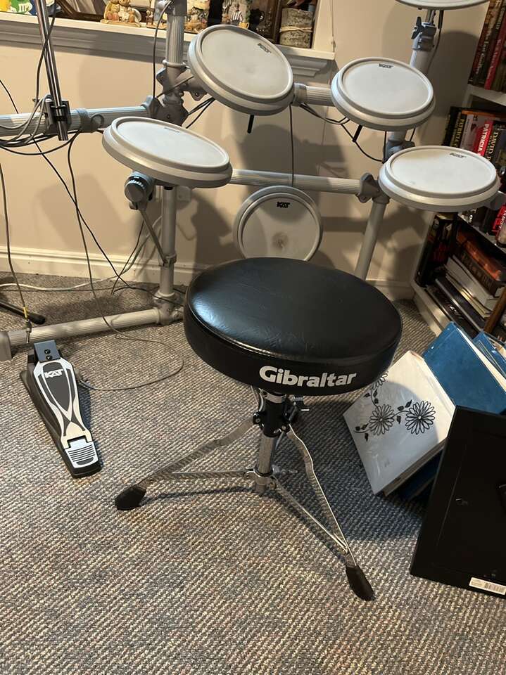 This is a very nice lightly used electronic drum kit. It has great response and all the drum heads and a nice set of electronic symbols. It comes complete with the Gibraltar throne and kick pedal.
