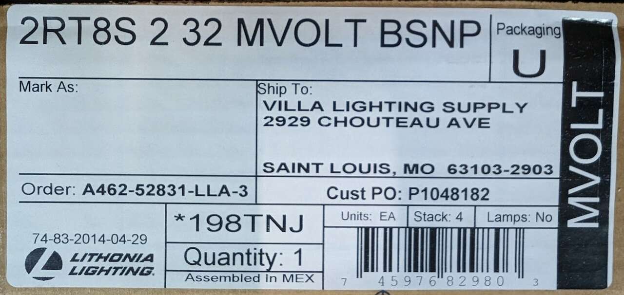 VenmoLithonia Lighting® 2RT8S 2 32 MVOLT BSNP Volumetric Troffer 4 foot Troffer, with 2 T8 Fluorescent Lamps, 55 W Fixture, or if requested 2 Phillips 12 Watt LED tubes ,28 W Fixture , 120 to 277 VAC, Steel Housing