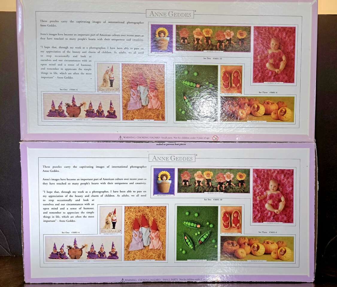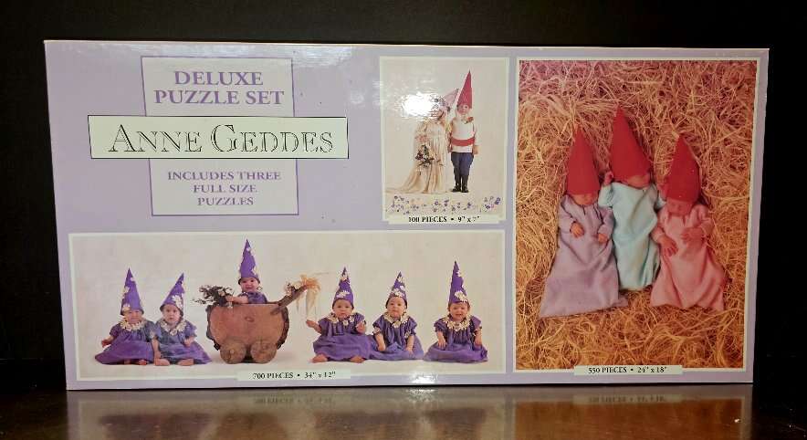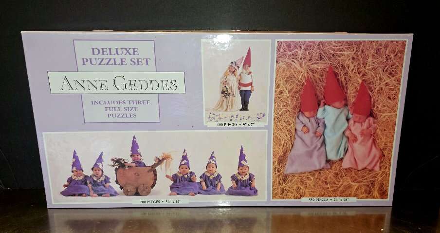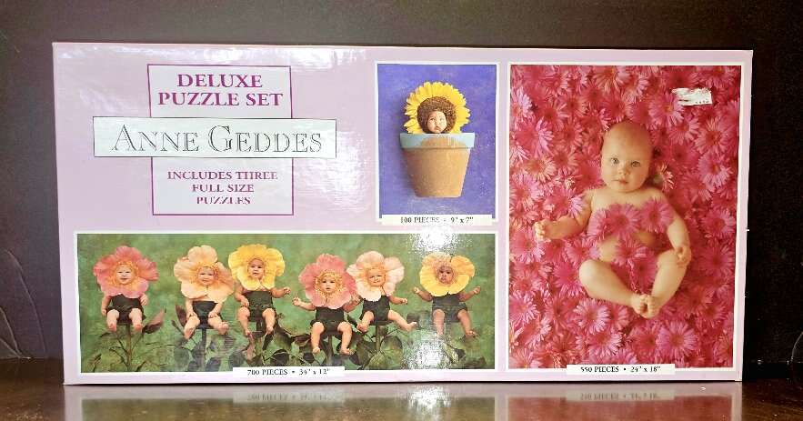 Look at these absolutely BEAUTIFUL baby faces from these 6 Vintage 3-in-1 puzzle sets. Two Anne Geddes Deluxe 3 piece sets. One NEW, but Vintage, Never opened, factory sealed. These have been in storage for years.