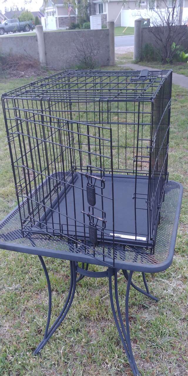 VenmoDurable two door crate. Top door is great easy access for puppys and training. Size 24L 19W 21H.