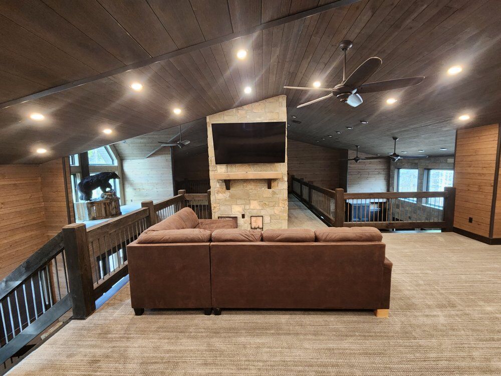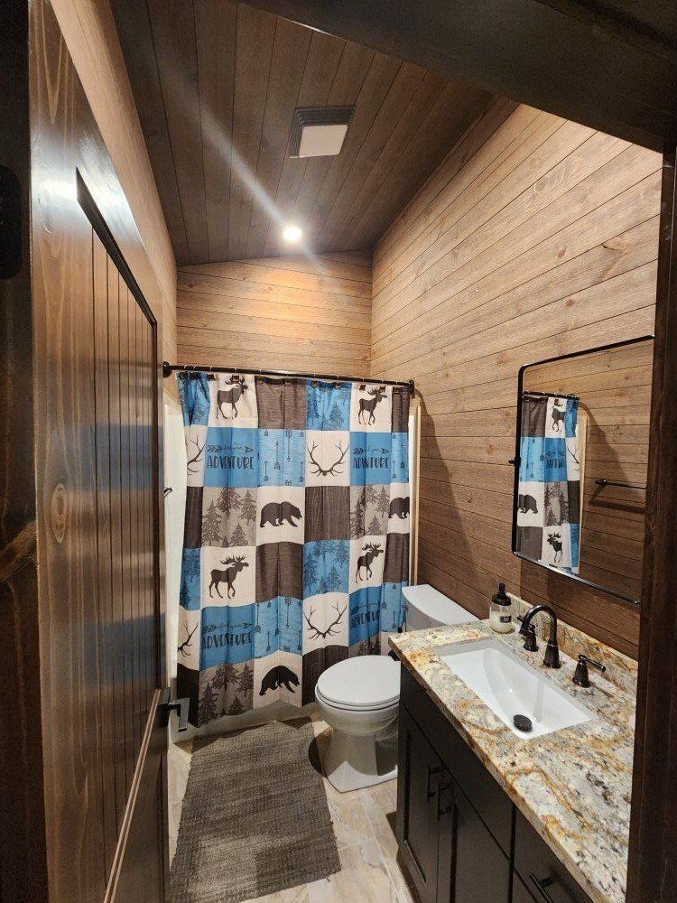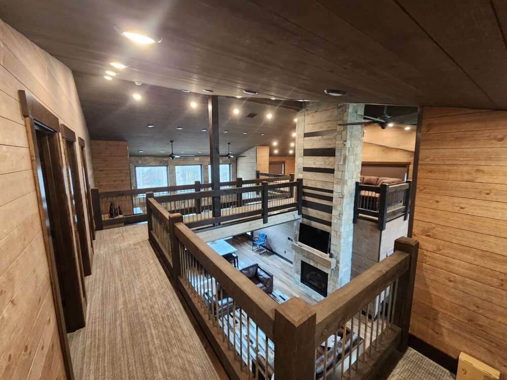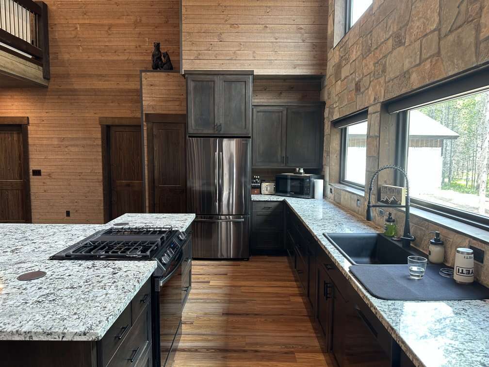 Nestled on Bills Island just a short distance to the docks, this spacious 5-bedroom/3-bath cabin harmoniously blends rustic charm with modern comforts. Crafted from natural wood and stone, it exudes warmth and coziness. Large windows frame stunning views of the surrounding wilderness. Inside, a well-appointed kitchen, open-concept living area, and stylish furnishings create an inviting atmosphere. Able to accommodate up to 22 people in comfortable beds, it's perfect for accommodating gatherings of family and friends while providing a serene retreat from the modern world. This is a unique modern design with a mountain home feel.