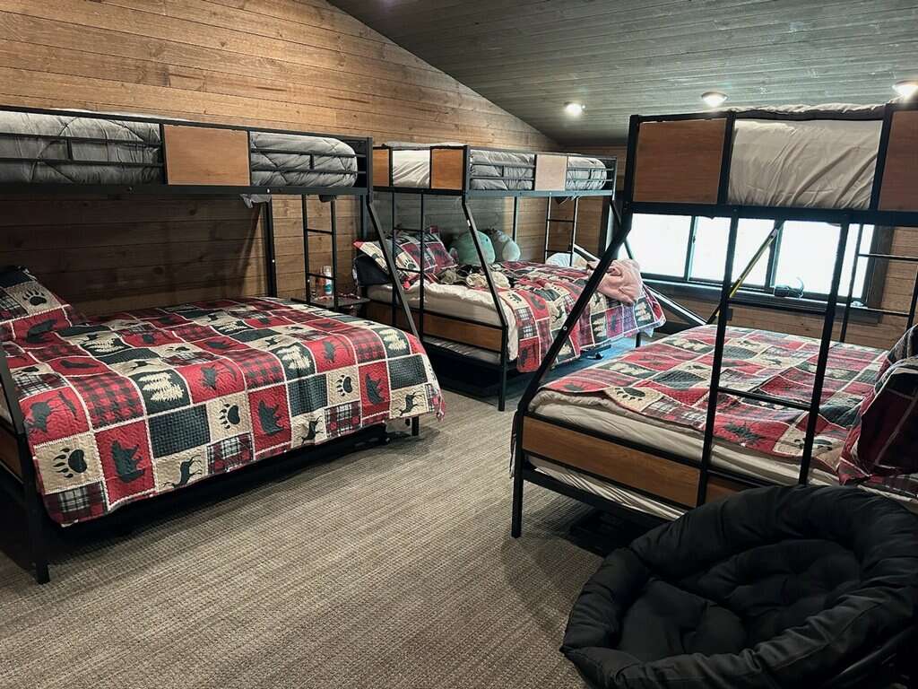 We would love you to try it out and tell us what you think. The large bunk room alone sleeps 12 and is a hit with the kids! The oversized parking area has room for multiple vehicles, including snowmobile, ATV or boat trailers. Large RV spot with full hookups available on site during summer months. Personal Boat slip available upon request.