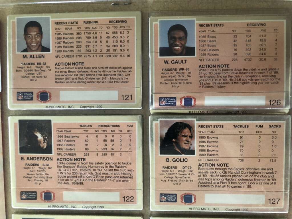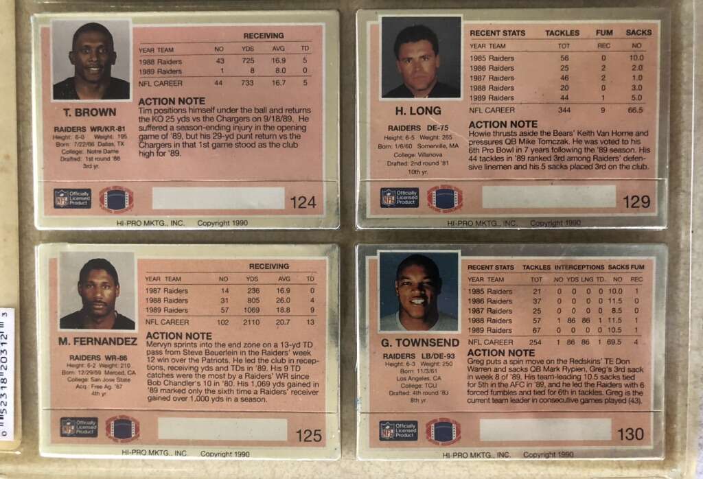 Action Packed Los Angeles Raiders Team Set Card #’s 121-130!