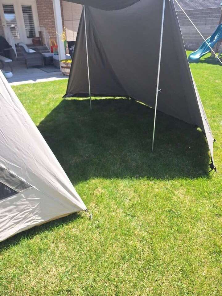 New vestibule wing. Fits the 10x10 and 9x8 Kodiac canvas. Used only for the picture in this add and I think it's inside out . Upgraded to 10x14 won't fit. . Cash only firm on price Thanks