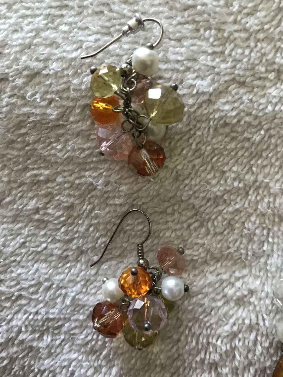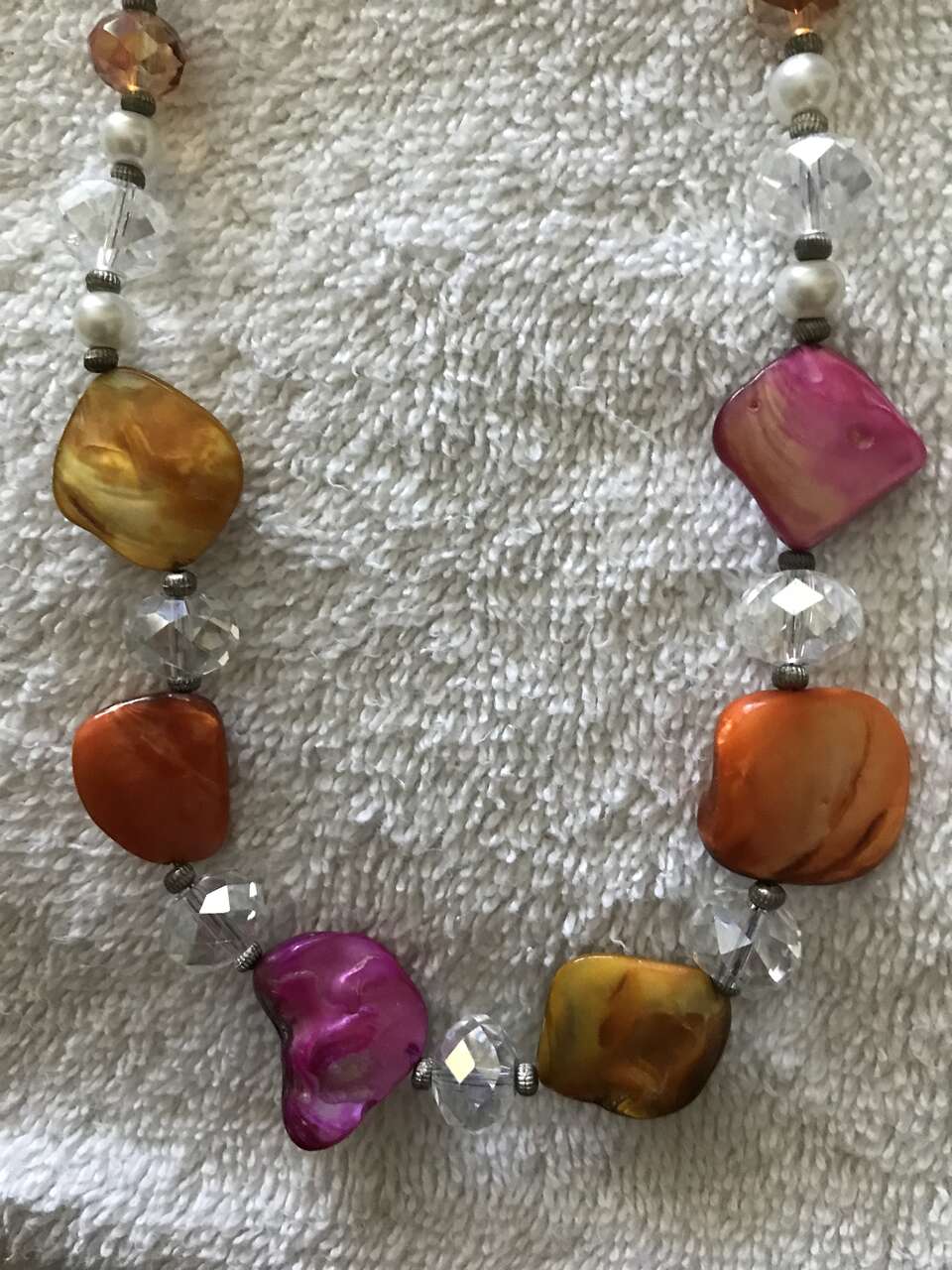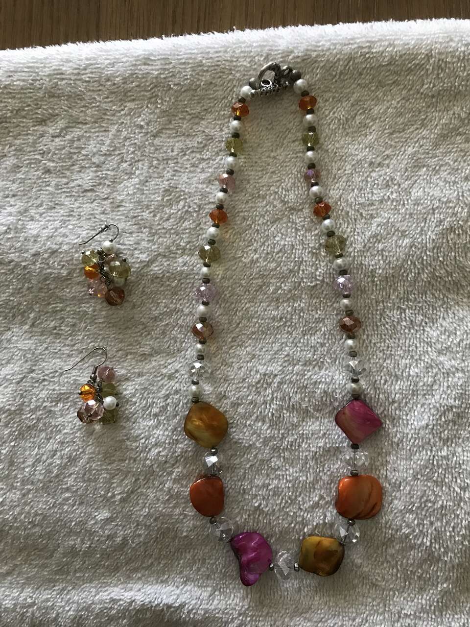 Necklace and Earring Set - colors pink, orange and white. The necklace is seven inches long and it is in excellent condition.