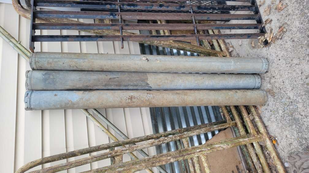 Three five foot triple wall pipes are older but would work fine with a little straightening.
