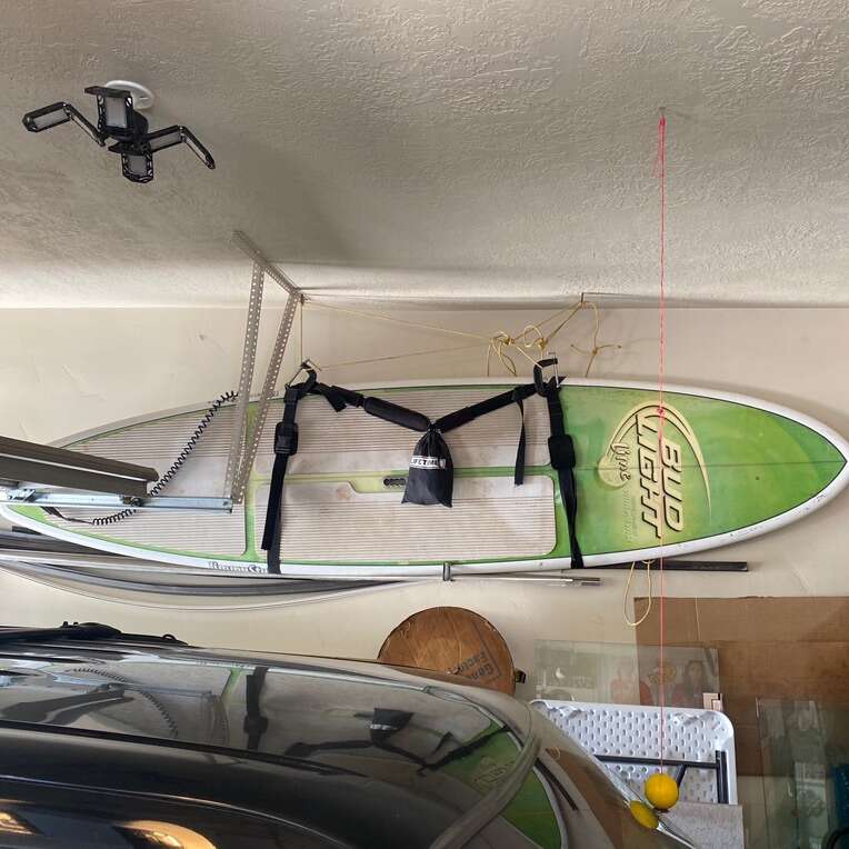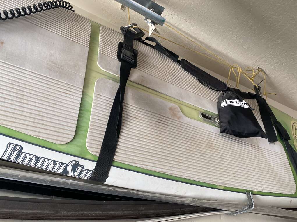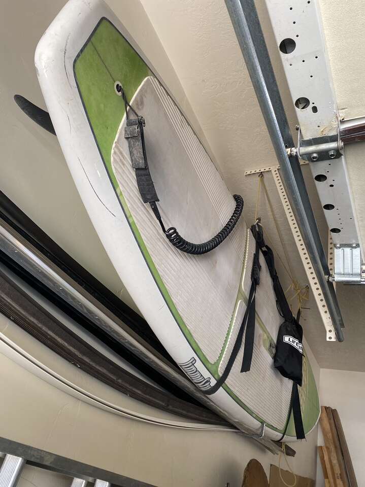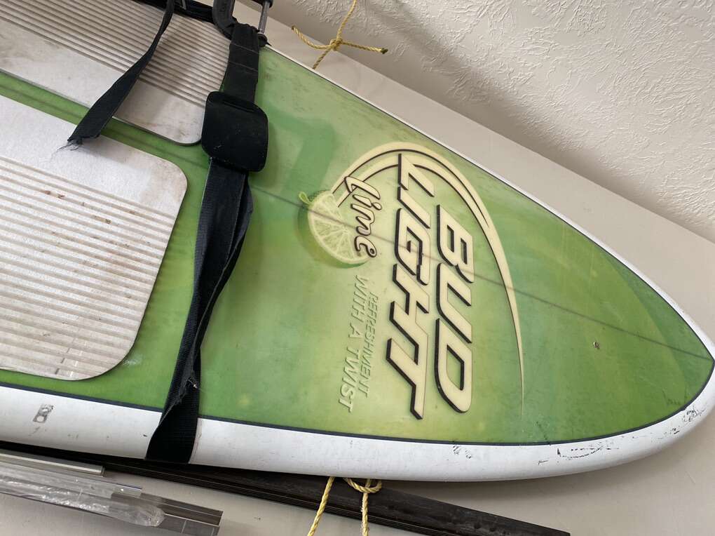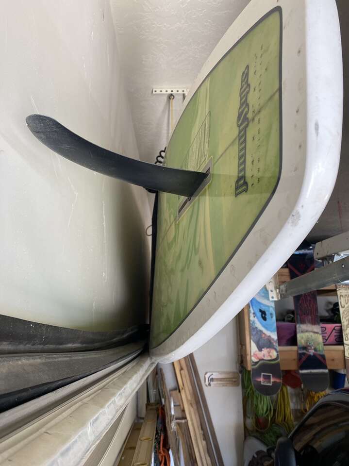 11’ 6” stand up paddle board. It is used but in fine working order. Comes with a retractable paddle and a shoulder strap for manual transport down to the water. It’s a fast and stable board. The foam grip on top works well and it’s fine condition. It’s always been garaged and kept away from the elements. It’s 4-5 years old. The person I bought it from won it in a contest. It’s very rare and unique! I paid 550$ for it and it had been used 3 times.