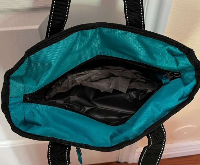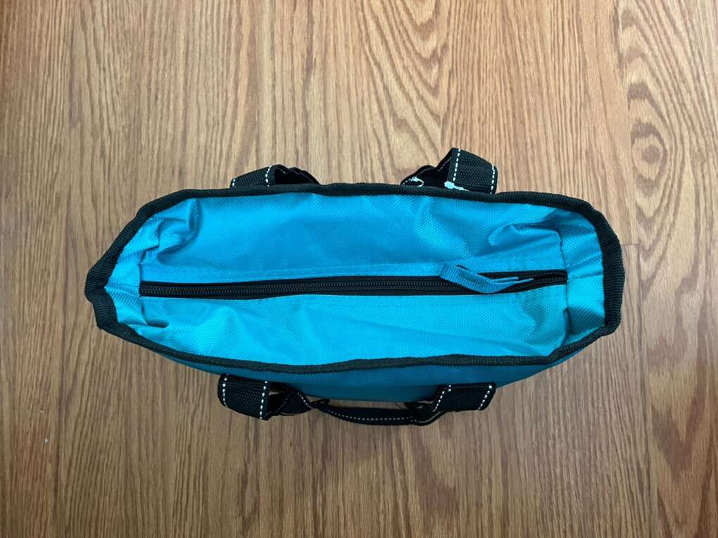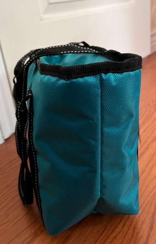 Never used turquoise lunch bag/cooler with black handles. Insulated. Spill proof. It is 8,5” deep x 4,5 wide x 11” long. $10