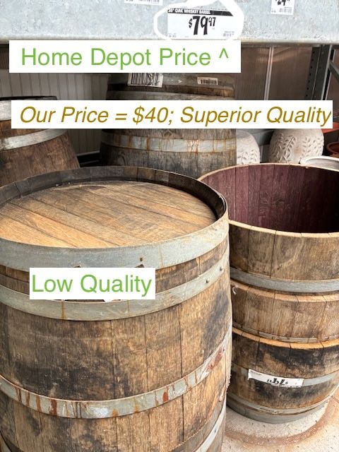 PayPalFor sale we have some excellent condition whiskey barrel planters cut from real authentic oak barrels last used for spirits. These are excellent for your plants and hold water really well while providing a unique look for your home and garden. We always have these on hand and cut them fresh before you arrive. Don't pay $80 per planter for low quality, dried out planters from Home Depot - get the best from us at half the price!