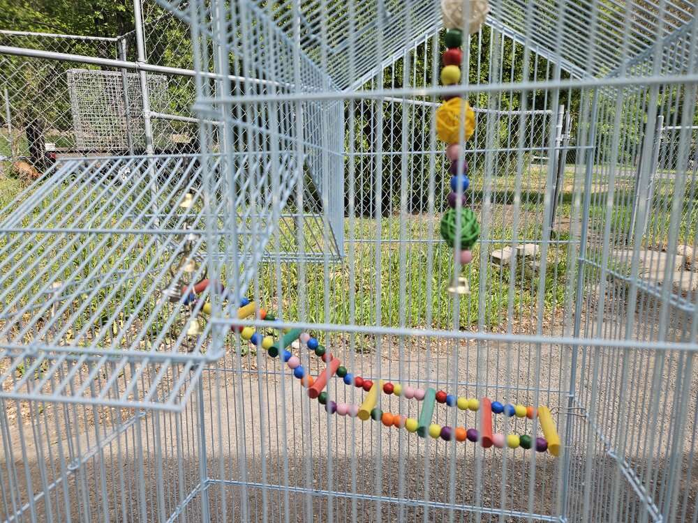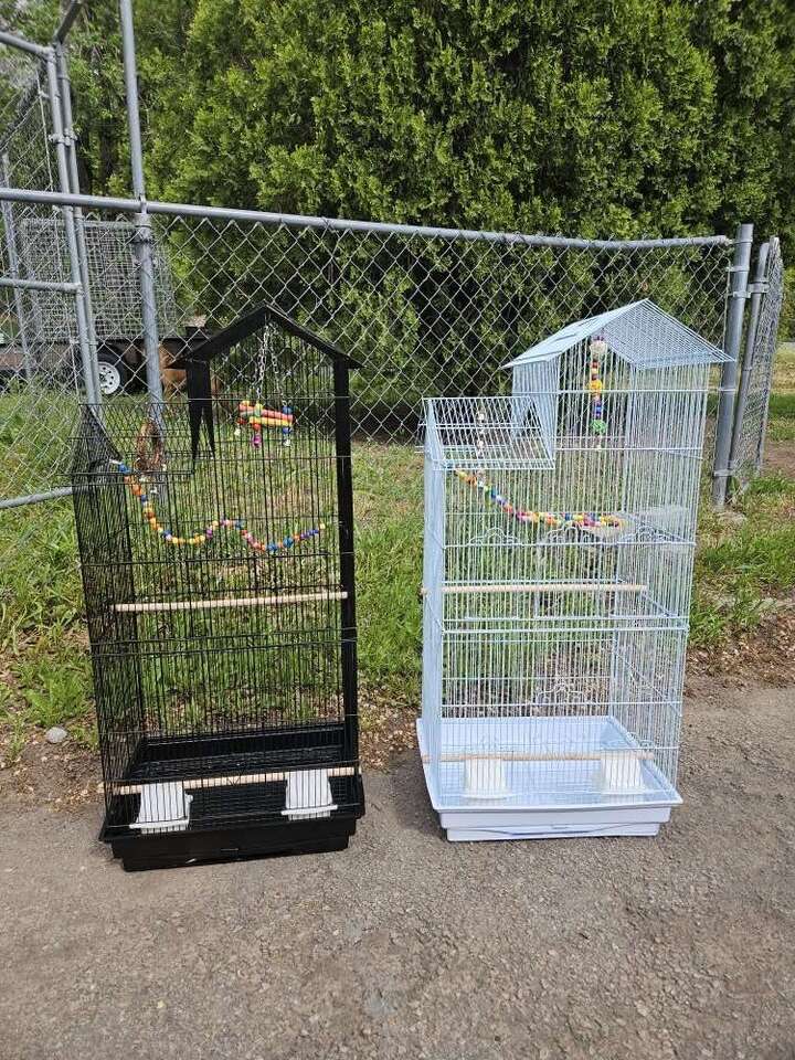 I have brand new cages available. They come with three toys in it to perchase and dishes. And pictures have more description about the size and price. $55 without toys $65 with three toys in it. And your choice of black/white
