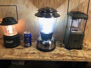 Few camping lanterns, battery powered, that I haven't used in a while. All work. May need new batteries. Can in pic to suggest size of units. text best 435.640.1100
