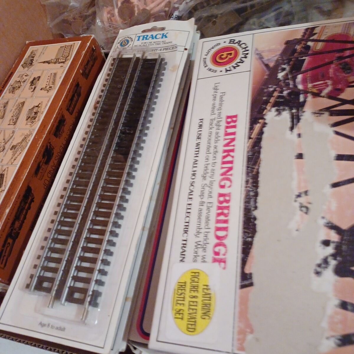 ALL HO SCALE. Engines-10. Box cars-11, Tankers-2, Flat cars-5, Gondolas-10, Caboose-9, and alot of track with snap on track black and gray and normal track and tunnel, and power supply. 12 Buildings, 3 Building kits, 2 Bridge kits, 1 Crossing, 2 Boxes of Cork 15 ft. each. 1-Tunnel, Roll of grass. And a lot of stuff for making or completing a layout of your choice. I counted 77 curve and 25 straight track that are in boxes not counting the gray and black quick connect track. 1/14/2026 REFER TO PICURES, THERE MIGHT BE SOME DUPLCATE IN PICTURES. CASH ONLY!!!!!!! TEXT ONLY!!!!!! PRICE IS FIRM, DON'T WASTE MY TIME OR YOURS, IF YOU AREN'T FOR REAL!!!!!!!!!!!!!!!!!!!!