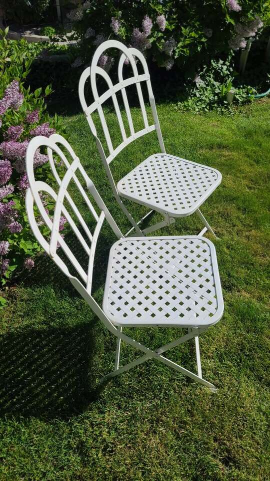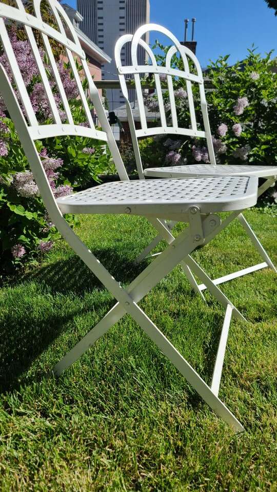 The seat measures16"x16", 18" tall at the seat, 37 1/2" tall at the back. I got these last fall to go on my porch, however I have decided to go a different direction and don't need them. They are heavy and sturdy iron. They fold up and down fairly easy, and have little latches to secure them once in the seated position. I could only find 1 similar pair online going for $850!! I paid $150, but after having these listed all summer I'm willing to take $120 to see them leave my porch. I can take cash or Zelle. I live downtown near the capitol in Salt Lake for pickup. First come first served, cross posted.