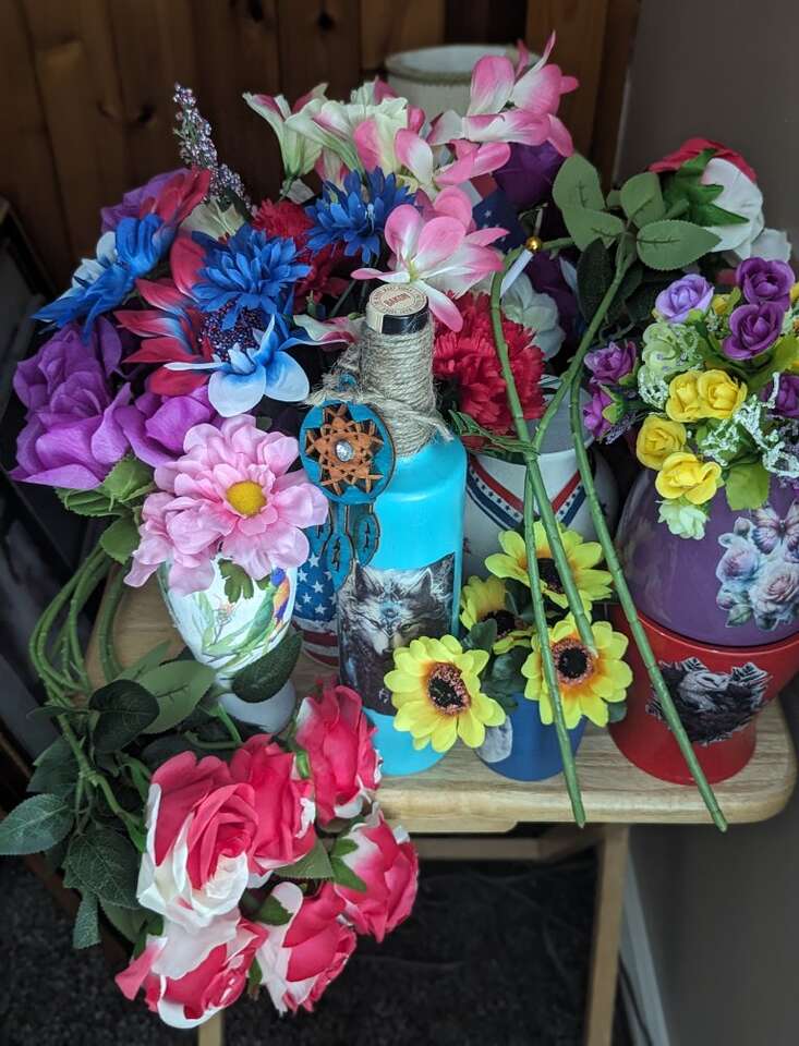 Rose, Sunflower & Bee Vases $12 HandMade (Flowers Available for an extra charge) Great Mother's Day, Anniversary or just because Gift. Also great as table centerpieces.