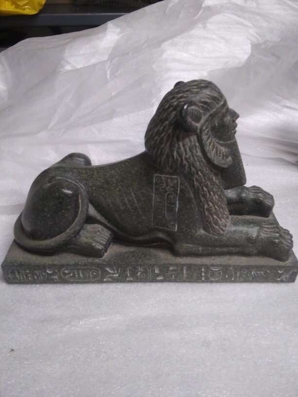 Egyptian sphinx made of resin green 8.5 inches long 3.5 wide 5.5 tall