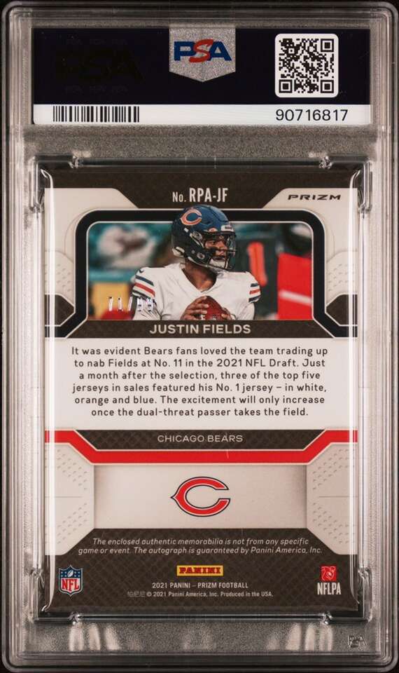 2021 Prizm Justin Fields RPA Rookie Auto #RPAJF PSA 9 Bears, Steelers