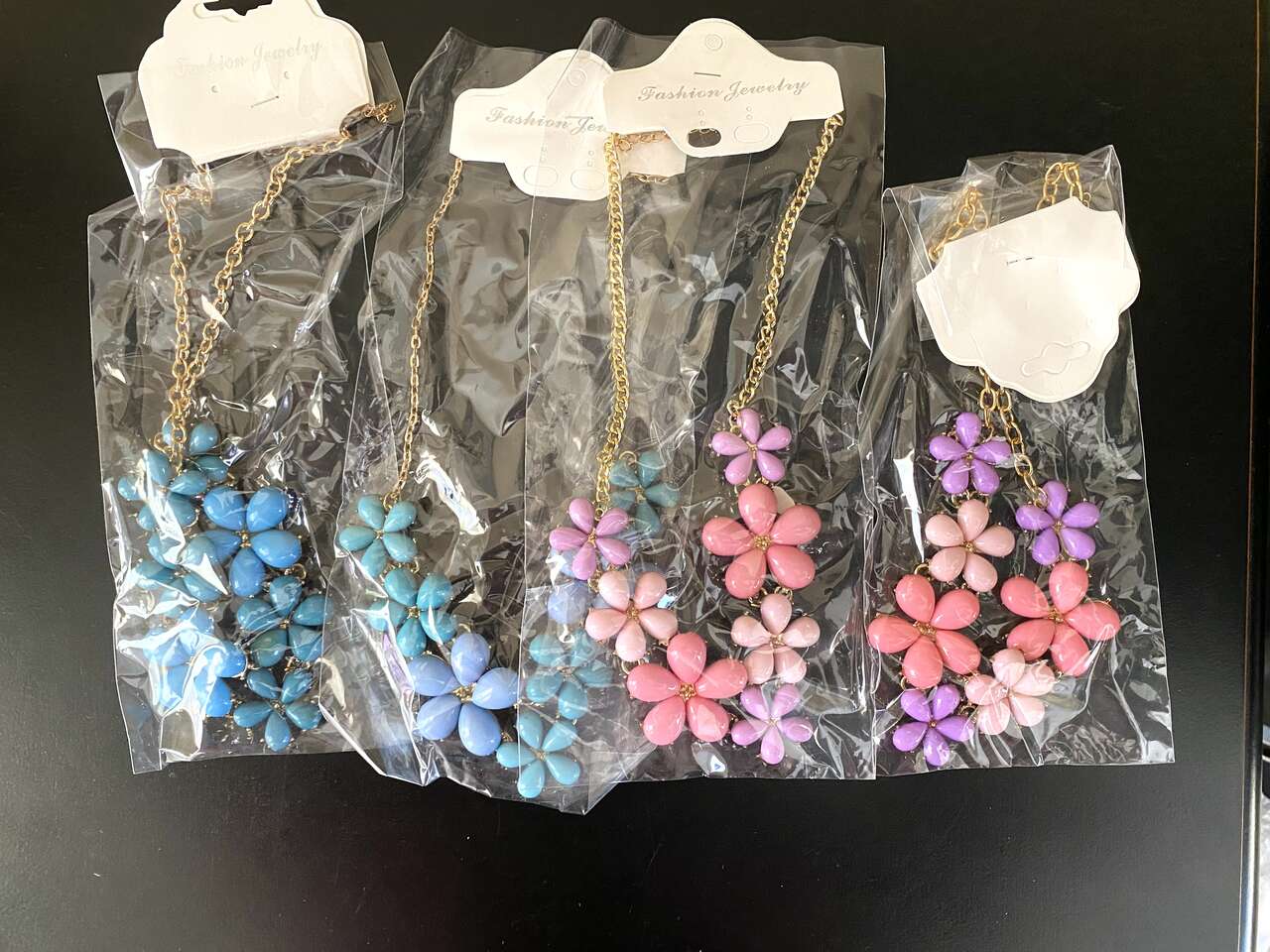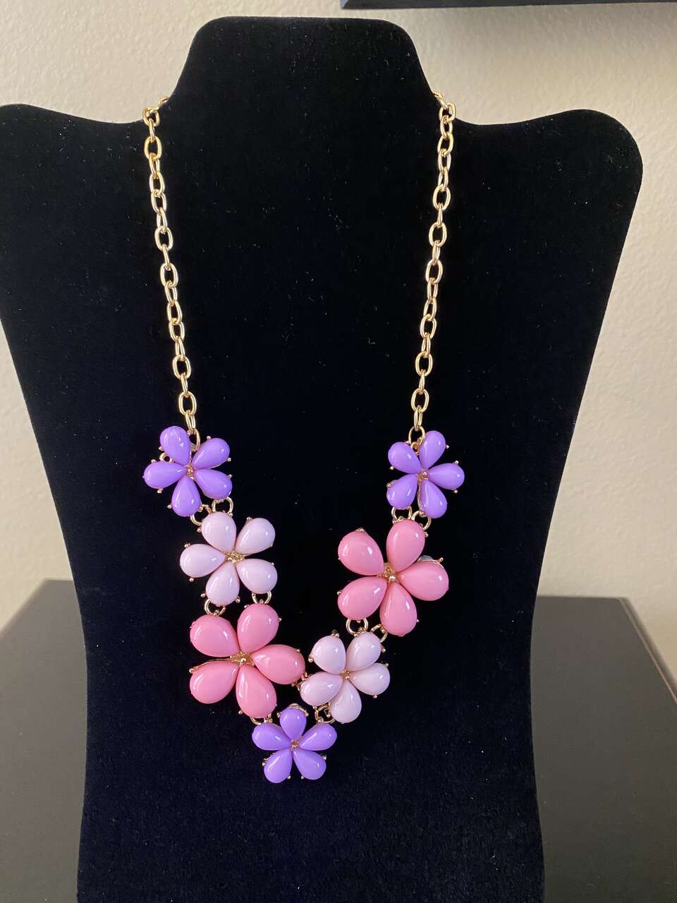 NEW Beautiful Pinks + Purple Shades of Flowers Necklaces Also in Shades of Blue - C All Pics.